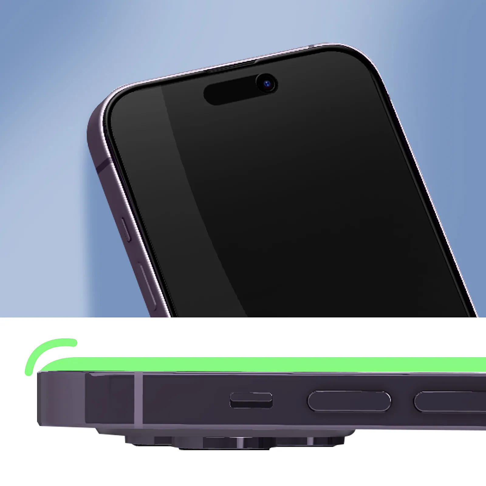 Film anti-espion Apple iPhone 14 Pro. Verre trempé 9H : antichocs et anti-rayures. Technologie anti-espion : protège votre contenu. Écran sombre pour les personnes qui regardent de côté. Traitement anti-explosion, anti-traces. Facile à installer.
