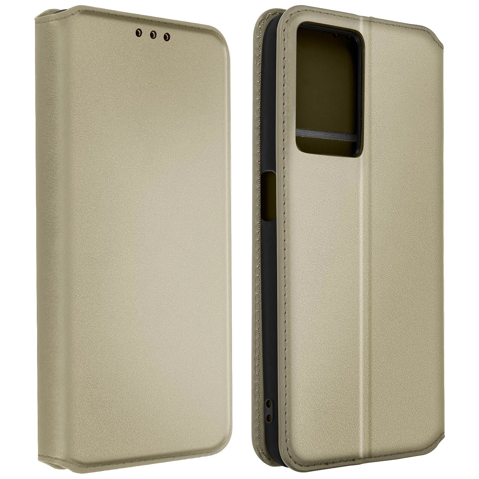 Avizar Housse pour Oppo A57 et A57s Clapet Porte-carte Support Vidéo doré
