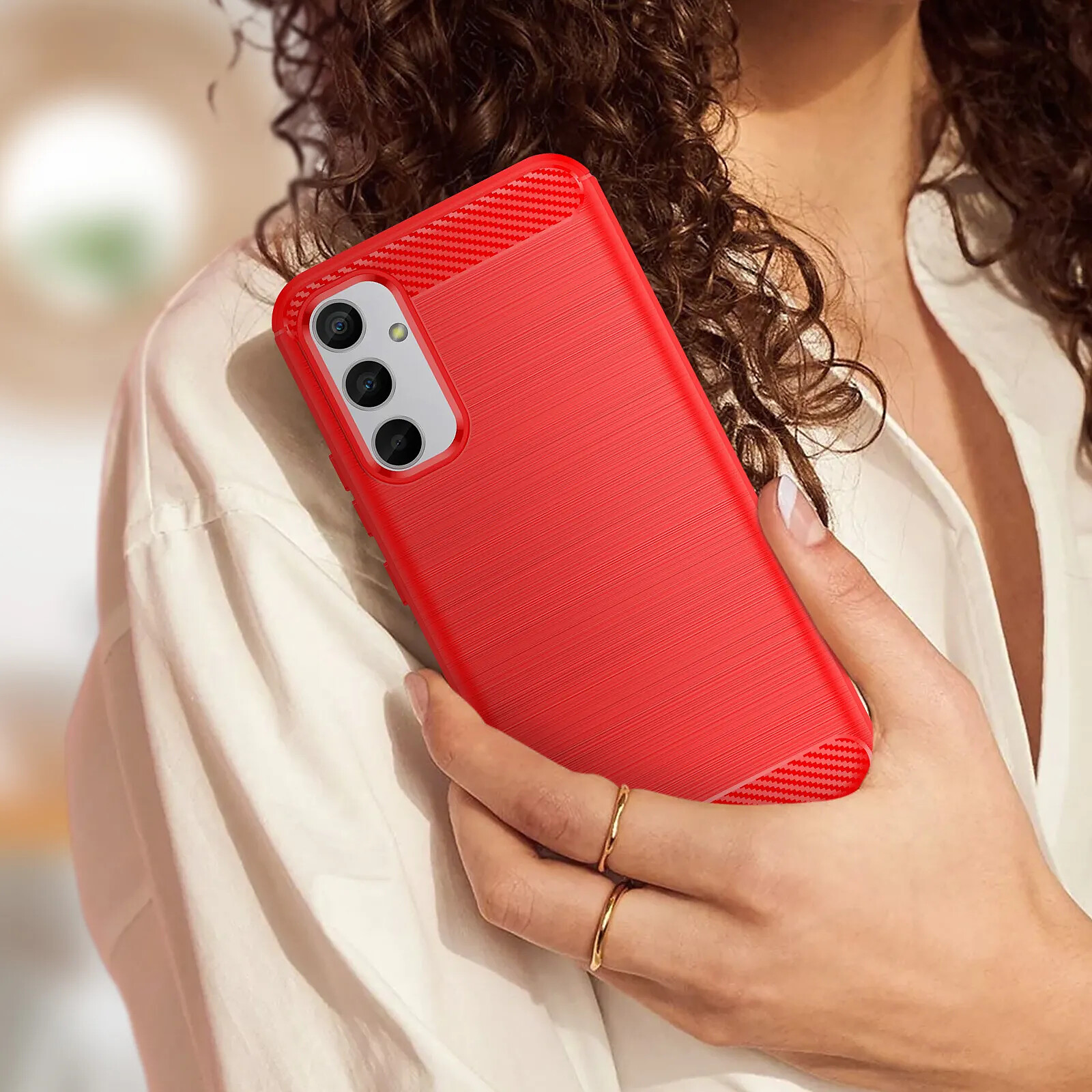 Avizar Coque pour Samsung Galaxy A34 5G Renforcée Souple Carbone Effet Brossé Rouge |