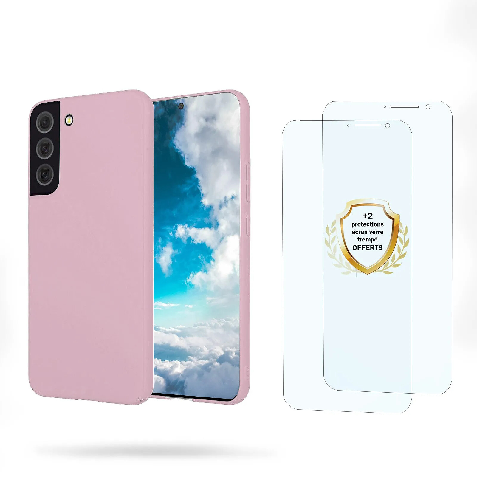 Evetane Coque Samsung Galaxy S22 Rose Silicone liquide + 2 Vitres en Verre trempé Protection écran Antichocs |