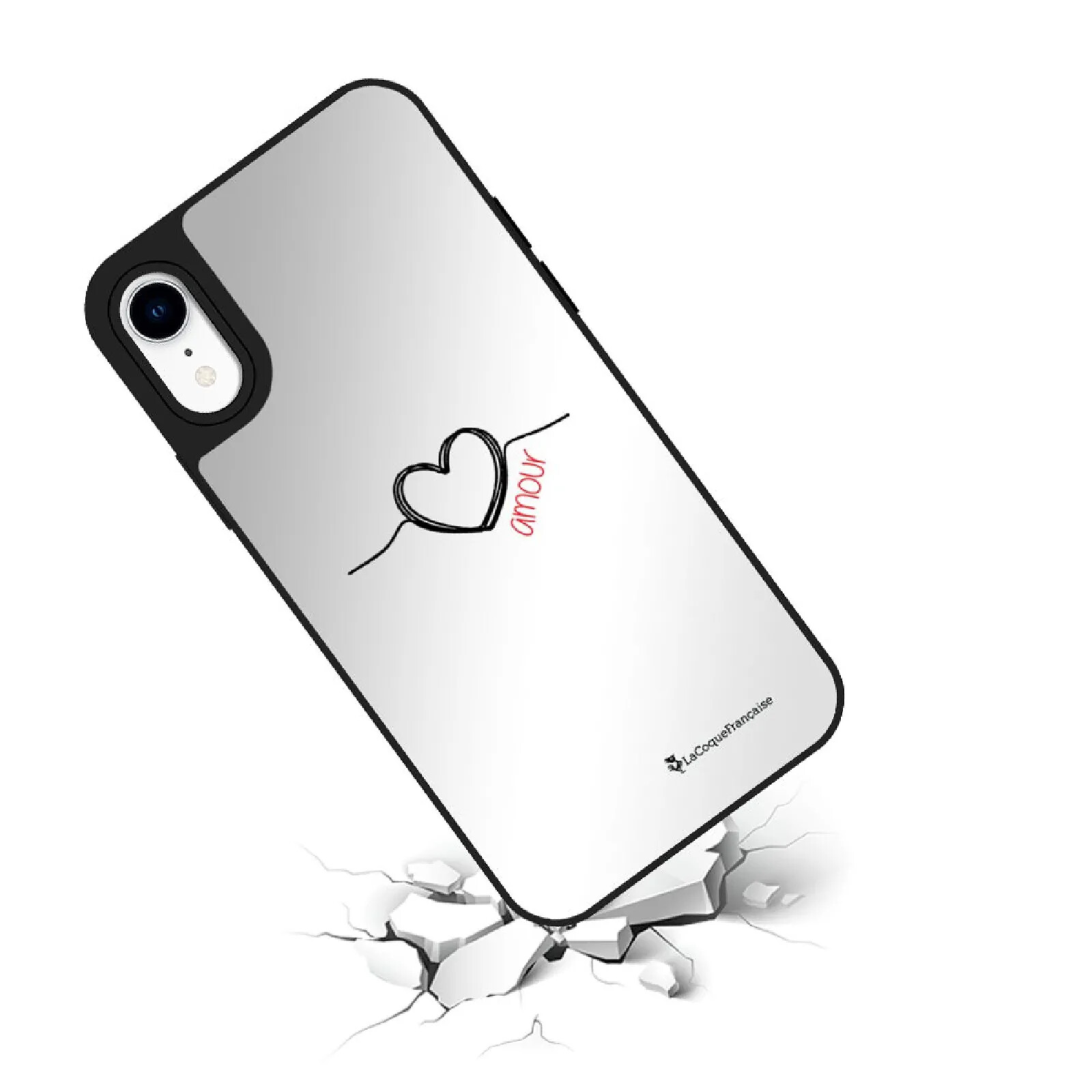 Coque iPhone XR miroir Coeur Noir Amour Design .