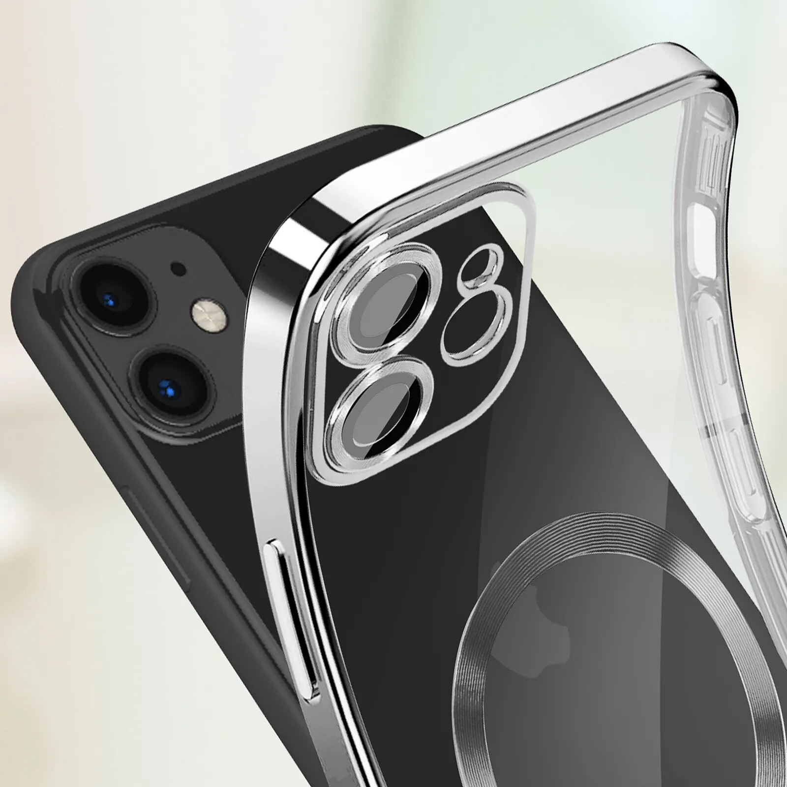 Avizar Coque MagSafe pour iPhone 11 Silicone Protection Caméra Contour Chromé Argent |