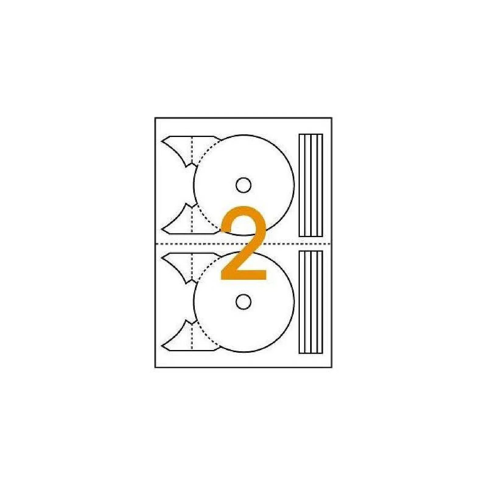 Boite de 100 feuilles A4. Etiquettes en papier certifié PEFC. Etiquettes CD-DVD Maxi qui couvre toute la surface du CD : diamètre extérieur 117,5 mm et 18 mm de diamètre intérieur.