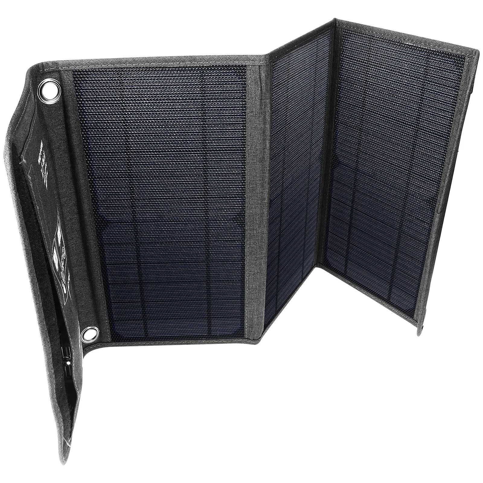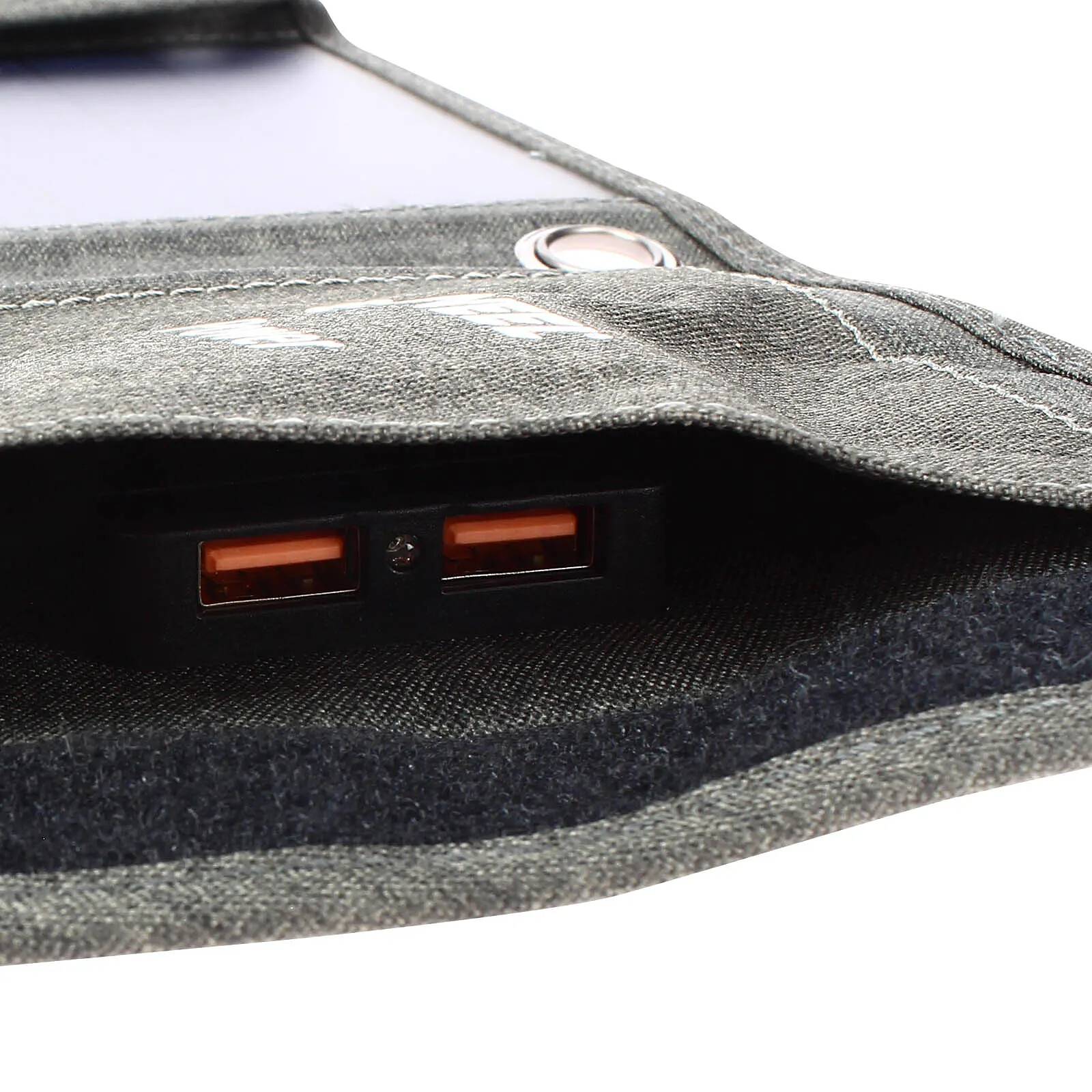 Chargeur solaire pliable et portable, captant l'énergie solaire pour recharger vos appareils lors de vos activités en plein air. Sous la lumière du soleil, il délivre une puissance totale de 21W. Double ports USB pour la recharge de vos appareils favoris.