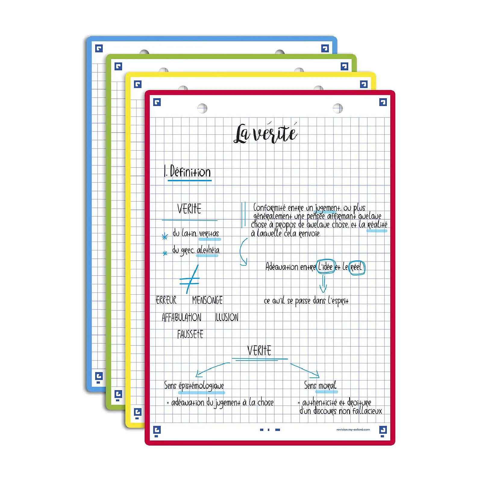 Une couleur par matière Les fiches REVISION 2.0 sont disponibles en 4 couleurs différentes de cadres pour vous permettre de classer et de mieux repérer vos fiches par thème ou matière.