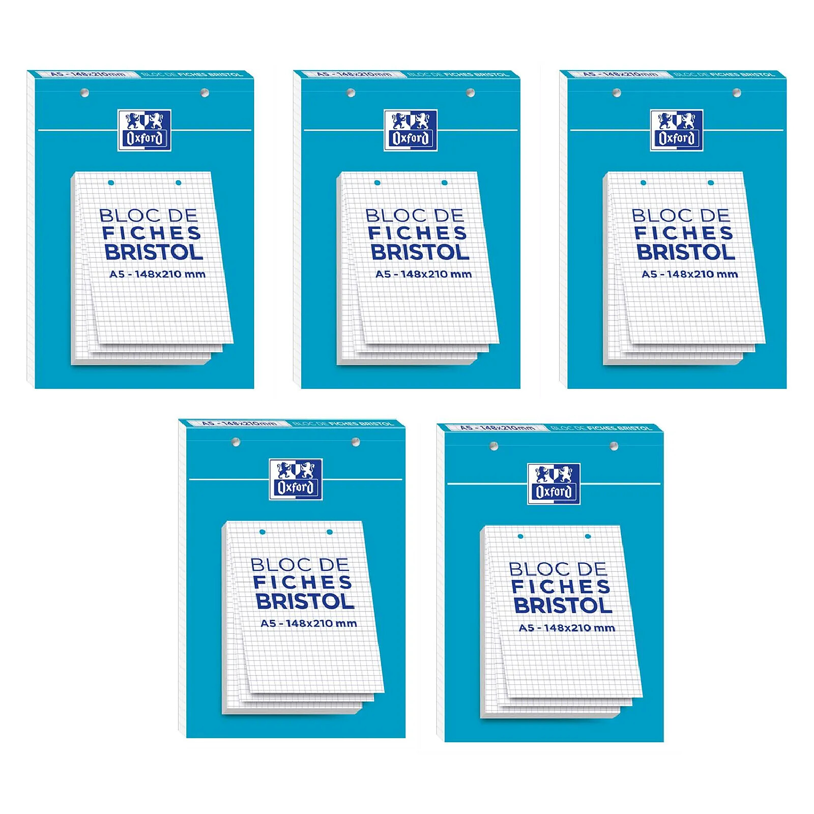 OXFORD Bloc de 30 Fiches Bristol Perforées A5 Q5/5 Blanc x 5 |