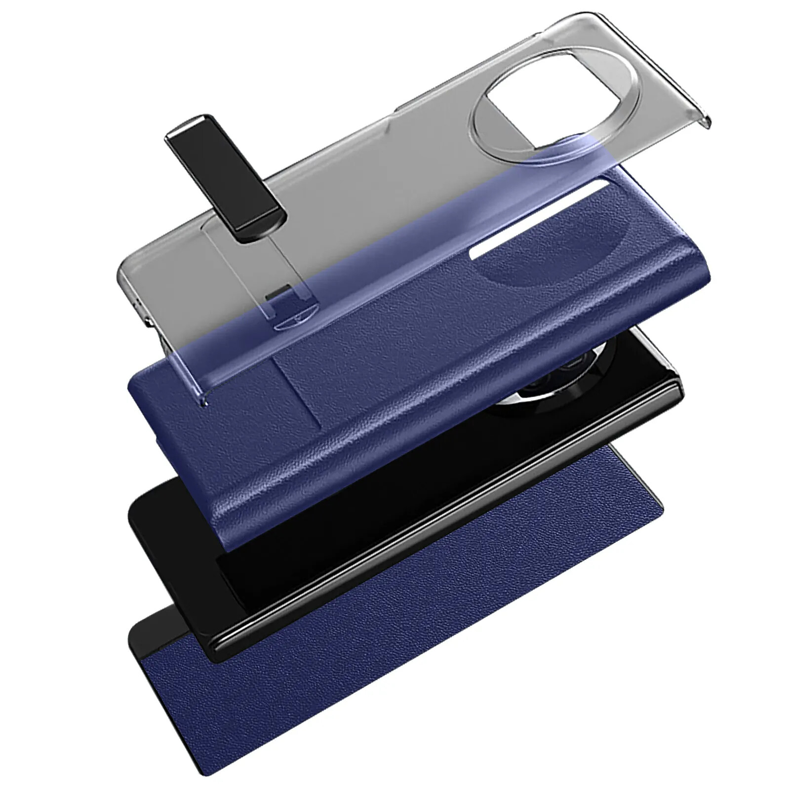 Avizar Coque Clapet pour Huawei Mate X3 Fenêtre et Béquille Clear View Stand Bleu nuit