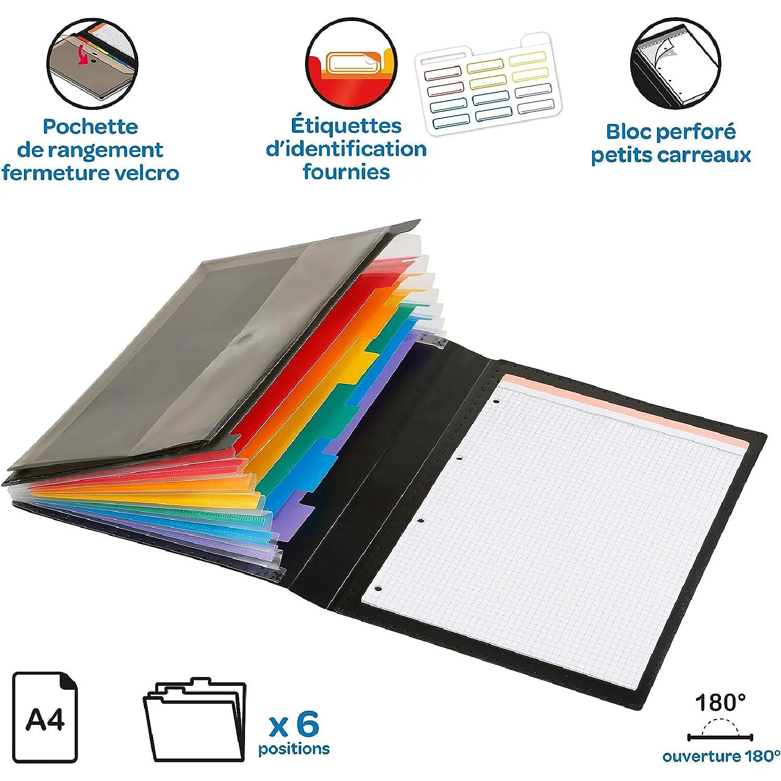 VIQUEL Conférencier Trieur à élastiques RAINBOW CLASS en PP 7/10e. + Porte-bloc + Pochette noir |