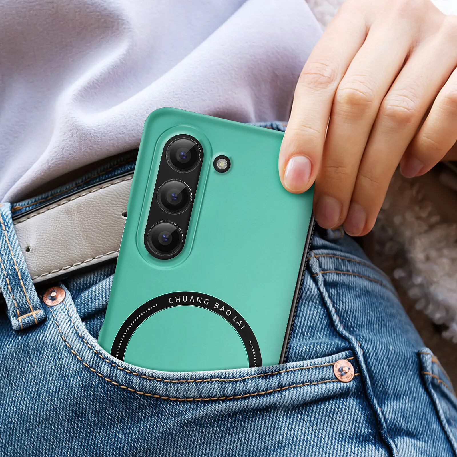 Coque MagSafe turquoise conçue pour optimiser l'utilisation du Samsung Galaxy Z Fold 5