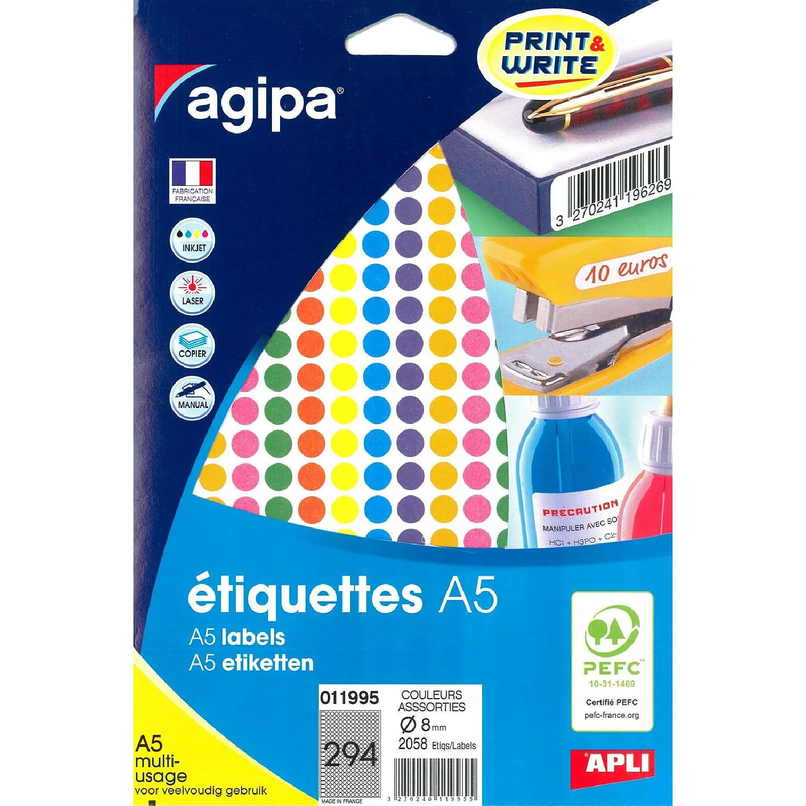 AGIPA Etui A5 ( 7F ) de 2058 Pastilles Gommettes Rondes 8 mm Assorties