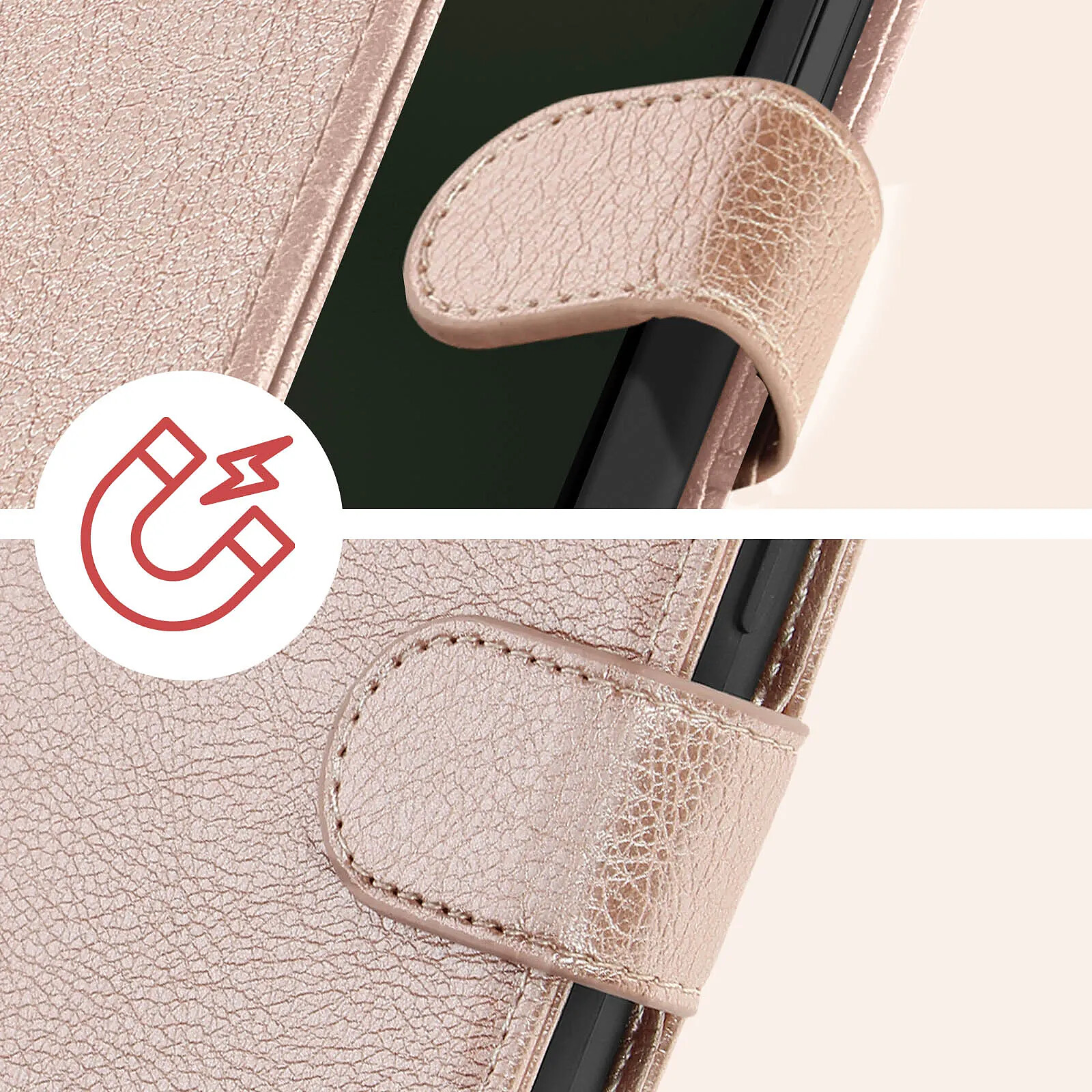 Avizar Étui pour iPhone 15 Pro Max Clapet Portefeuille Fonction Support Vidéo Rose