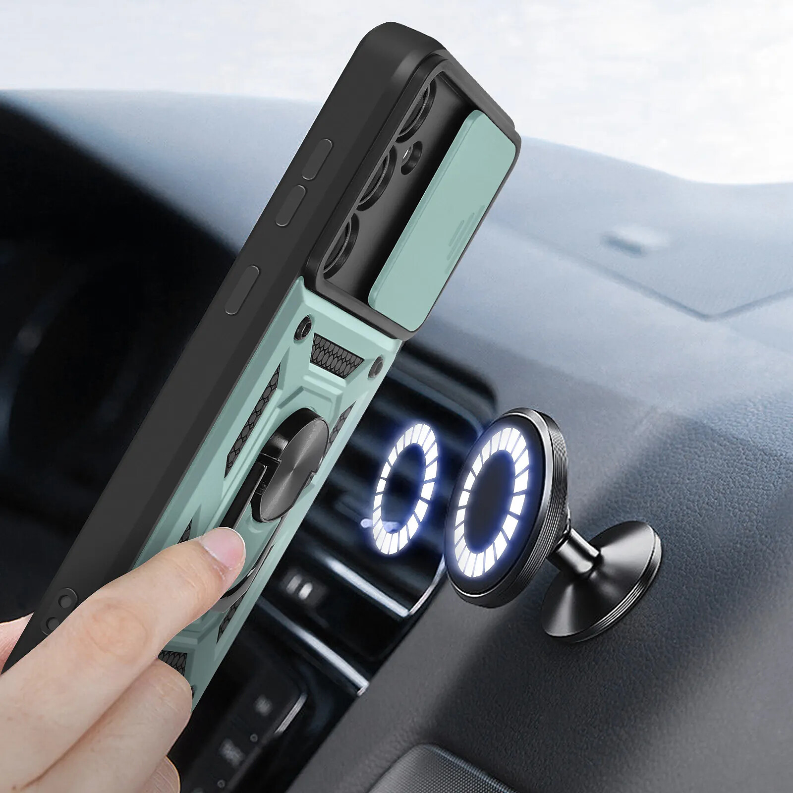 Avizar Coque pour Samsung Galaxy S23 FE Bague Support Cache caméra coulissant Vert |