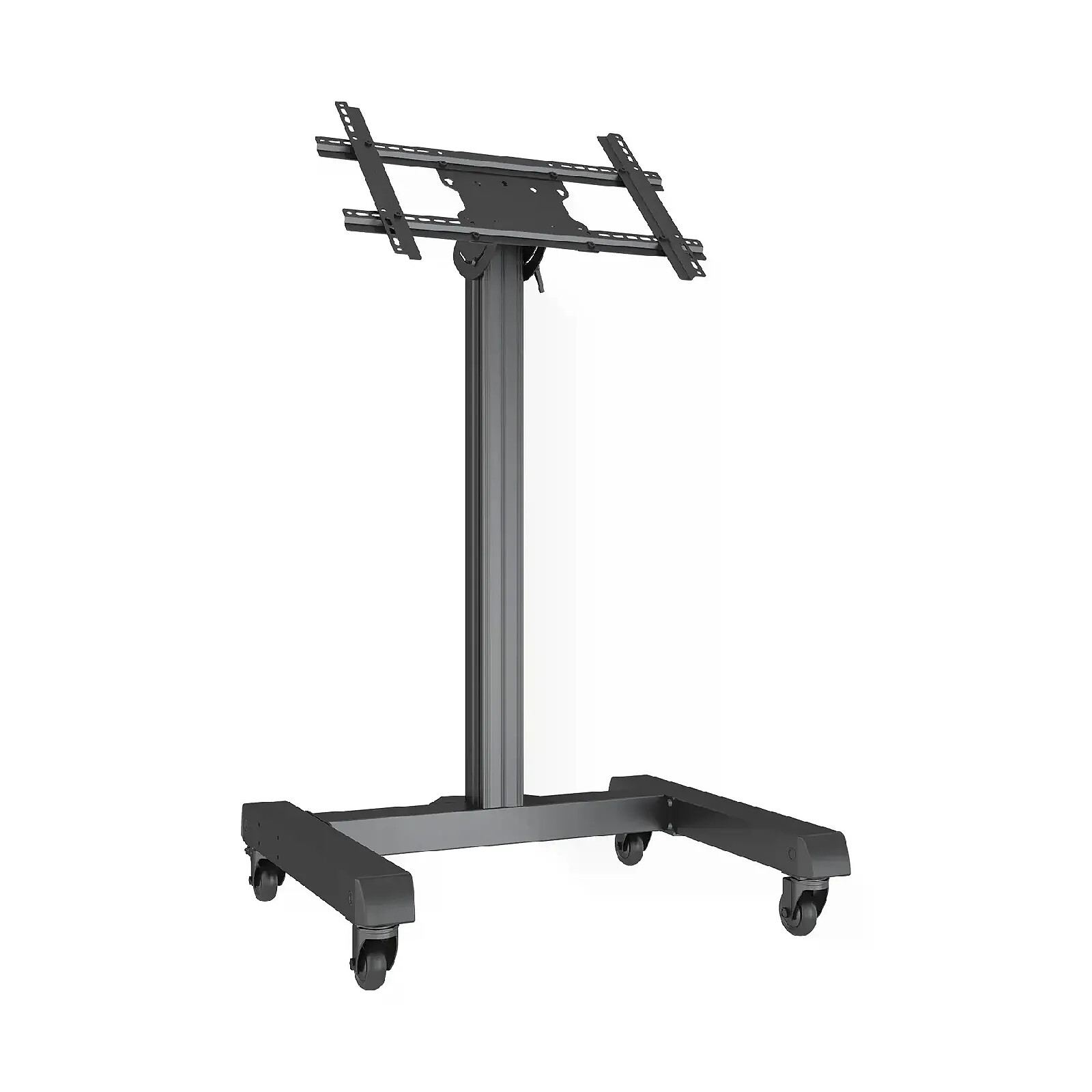 Libérez votre écran TV avec notre support mobile Kimex, conçu pour les écrans de 32 à 75 pouces. Polyvalent et facile à déplacer, ce support offre une solution élégante pour répondre à vos besoins d'affichage mobile. Robuste, fiable et simple à utiliser, le support mobile Kimex apporte une flexibilité maximale à votre espace, créant ainsi une expérience visuelle sans contraintes. Transformez votre manière de présenter avec le support mobile Kimex – l'innovation au service de la mobilité.Ce support mobile convient aux téléviseurs de 32" à 75'' répondant au standard VESA 100x100min, 600x400mm max, jusqu'à 70 Kg, pour tout type d'application professionnelle. Fonctionnel, ce support repose sur un mécanisme qui permet d'ajuster l'inclinaison de votre écran jusqu'à 90° pour le positionner en mode table, et de la pivoter à 90° en mode paysage ou en mode portrait pour s'adapter à chaque besoin. Equipé de solides roulettes, ce chariot mobile pour écran est idéal pour vous accompagner dans vos prestations, il dispose enfin d'un système passe-câbles pour une finition esthétique parfaite. Avantages : Support mobile et fonctionnel inclinable et rotatif Possibilité d'utiliser l'écran pour de l'affichage, de la consultation et de l'interaction avec du public Hauteur centre écran 118 cm Structure solide et base de sol équipée de roulettes robustes pour un sage intensif Passage de la connectique à l'intérieur du pied pour un rendu esthétique.