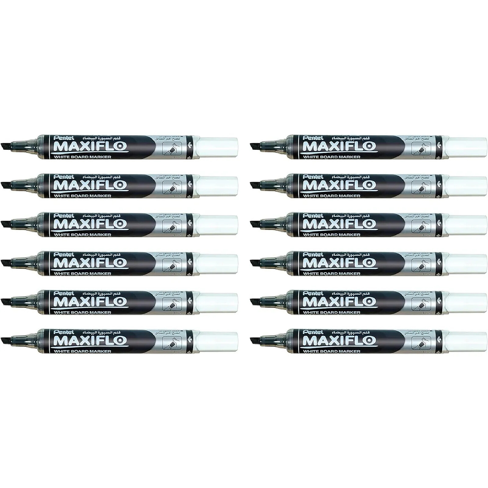 PENTEL Marqueur tableaux blancs MAXIFLO, Pointe biseautée moyenne, Noir x 12