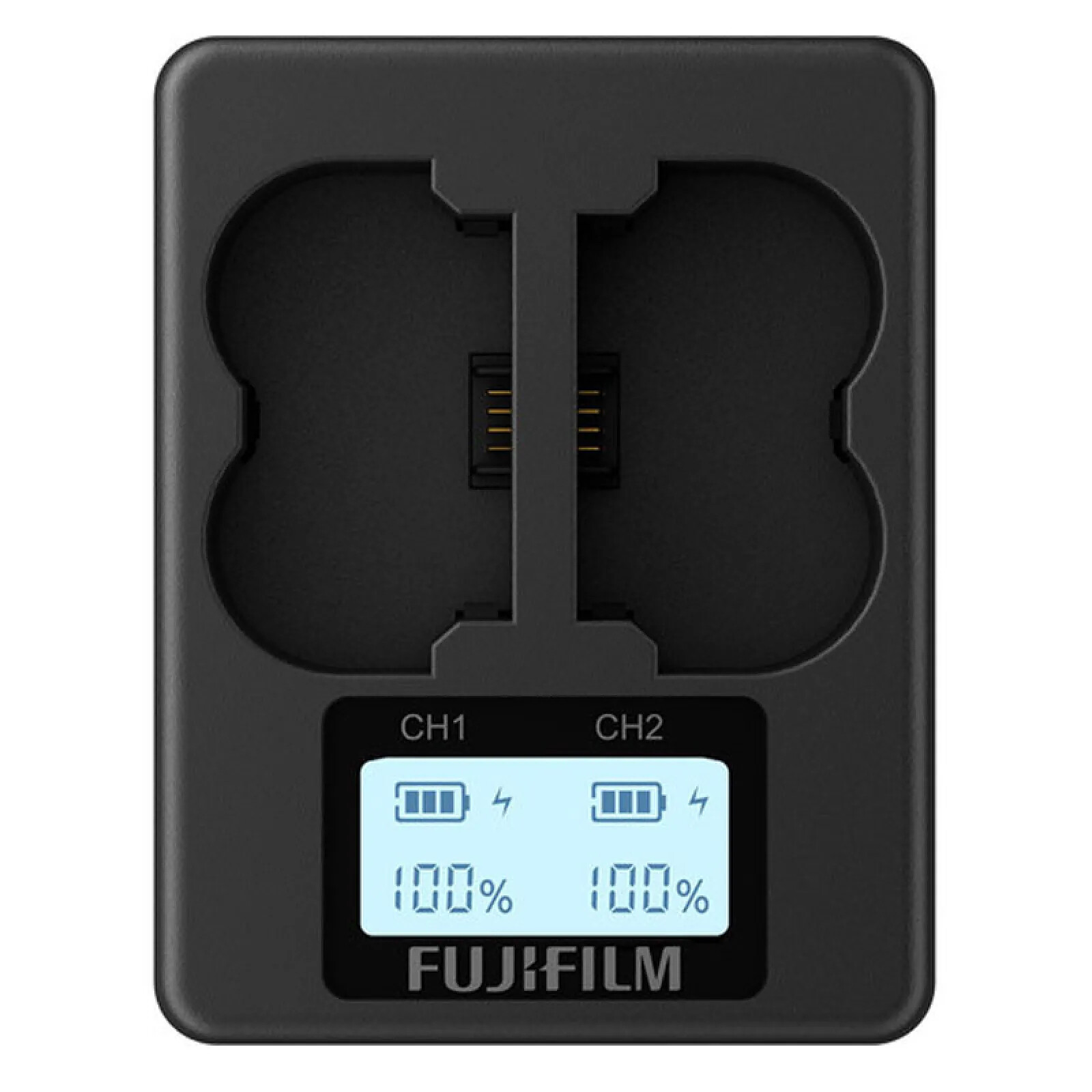 Ce chargeur permet de charger deux batteries NP-W235 en même temps.