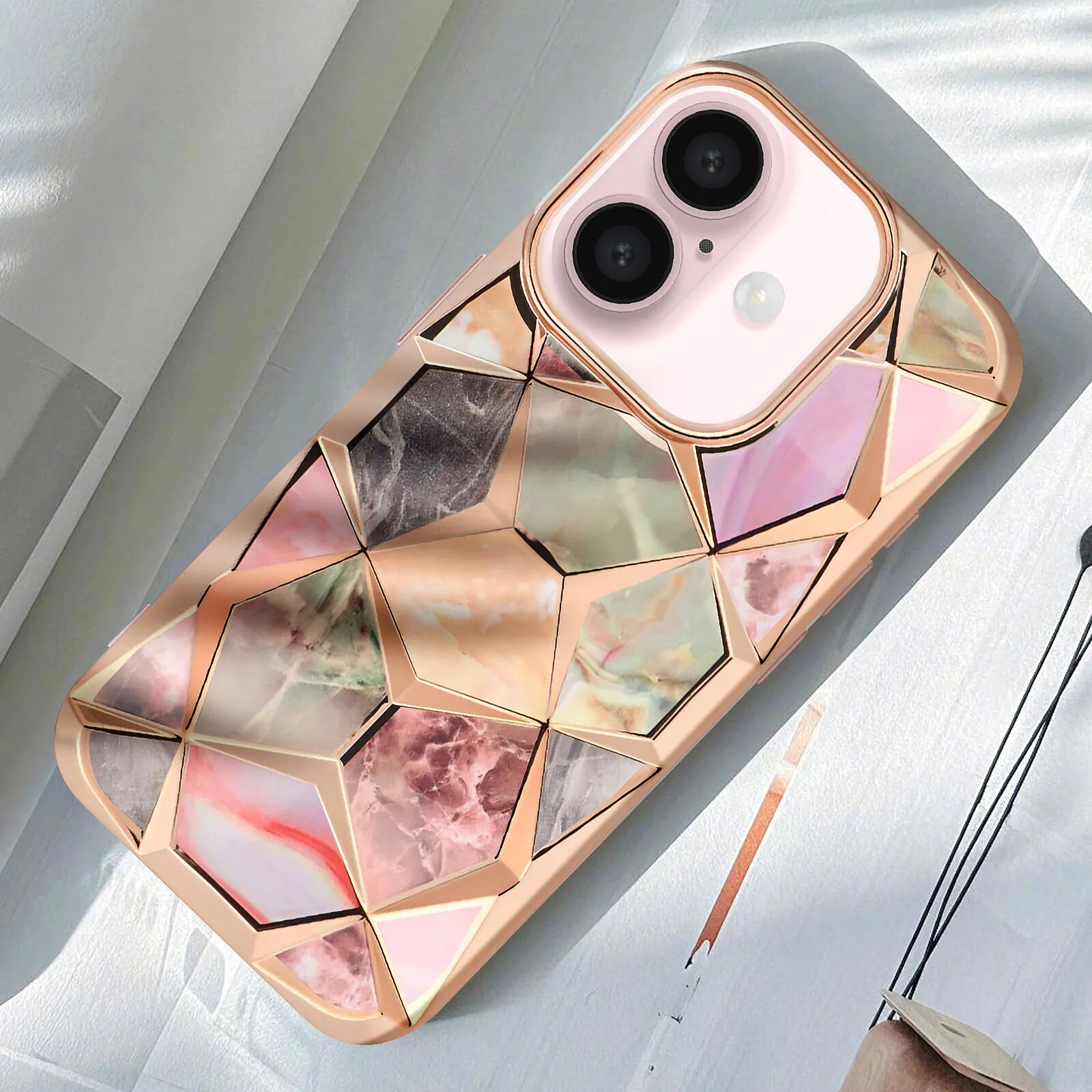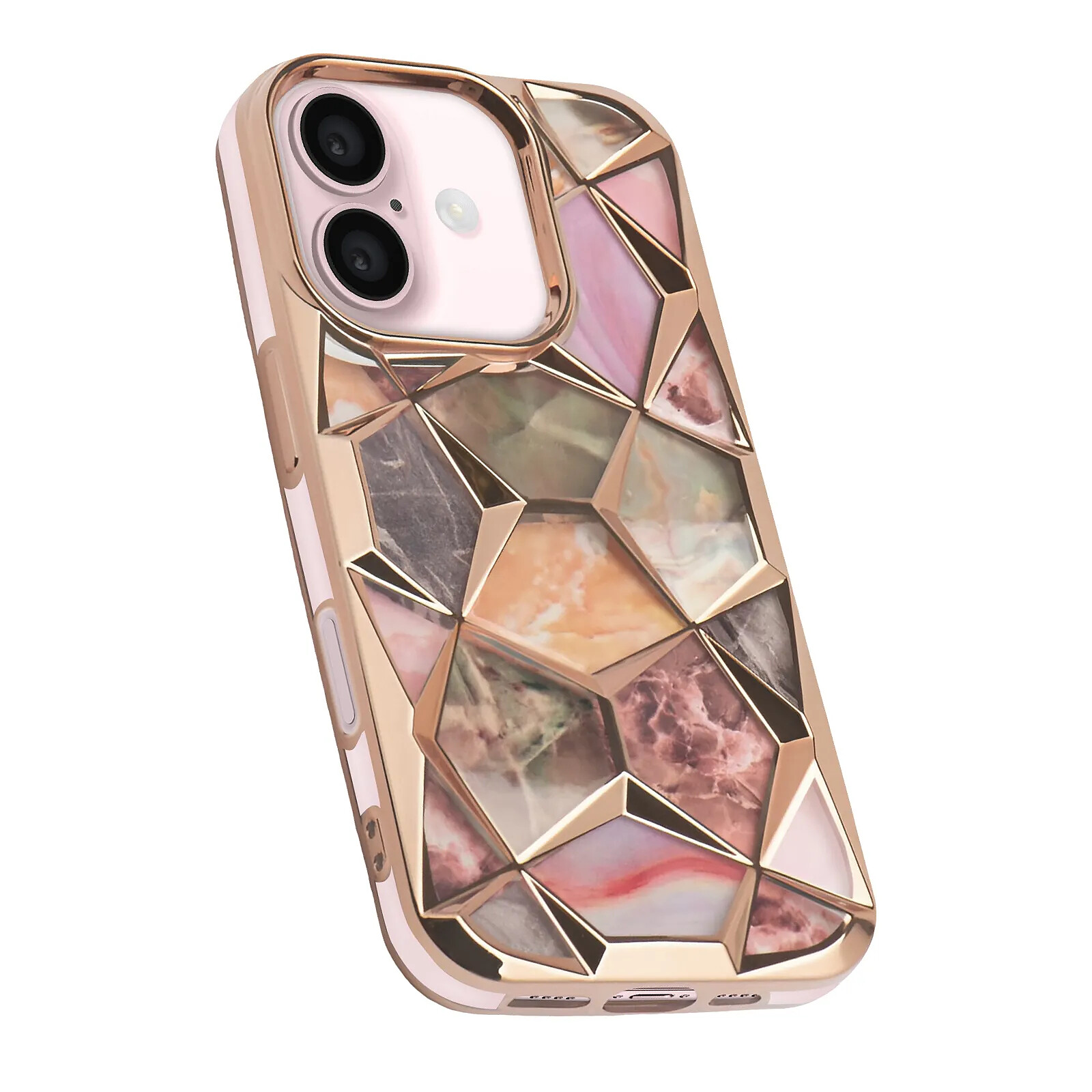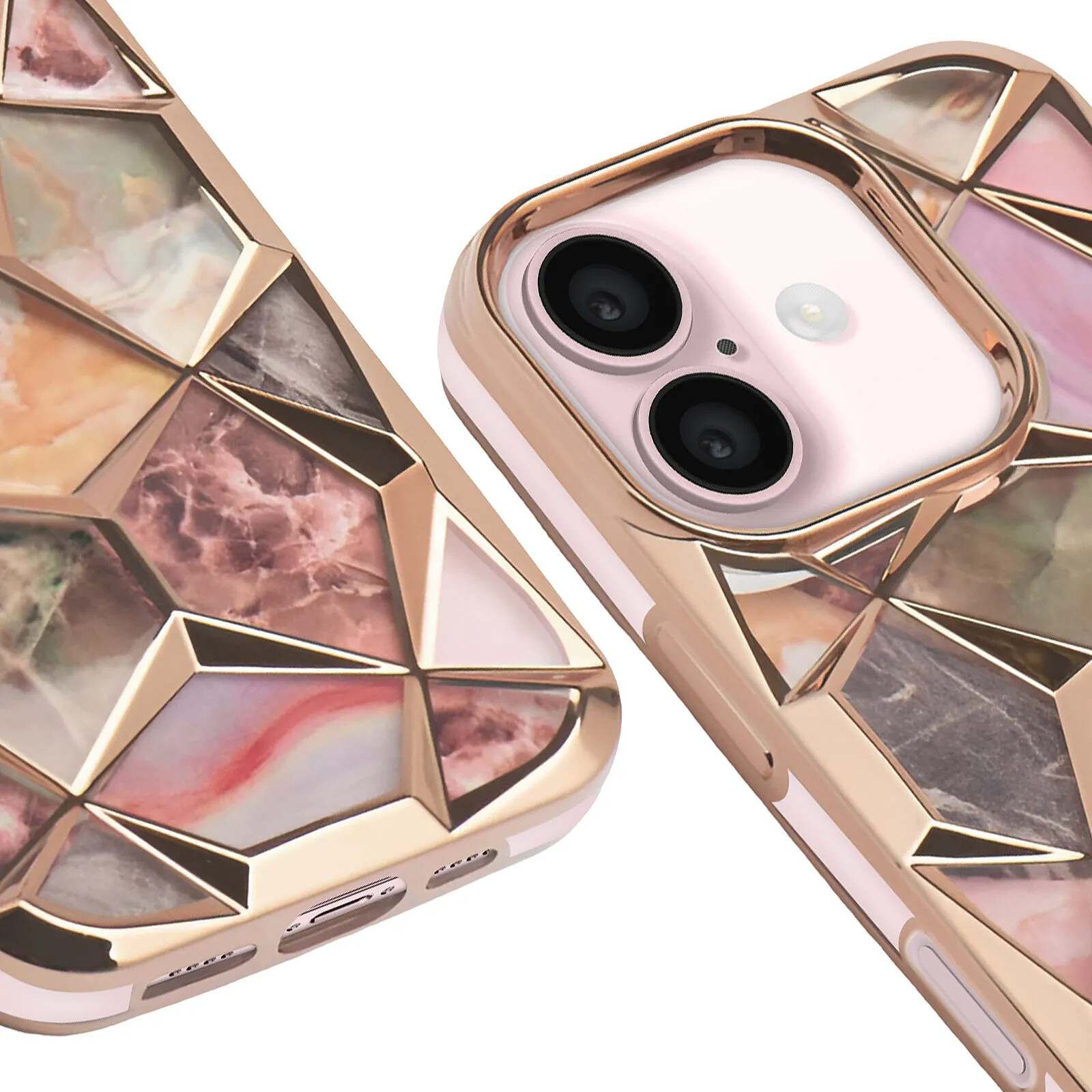 Coque pour iPhone 16 collection Twinki. Protection renforcée avec des bords surélevés pour l'écran et la caméra. Design tendance avec des motifs géométriques élégants. Coque modulaire permettant une personnalisation avec ou sans motif intérieur. Prise en main confortable grâce à une surface ergonomique. Installation facile et rapide en deux parties.