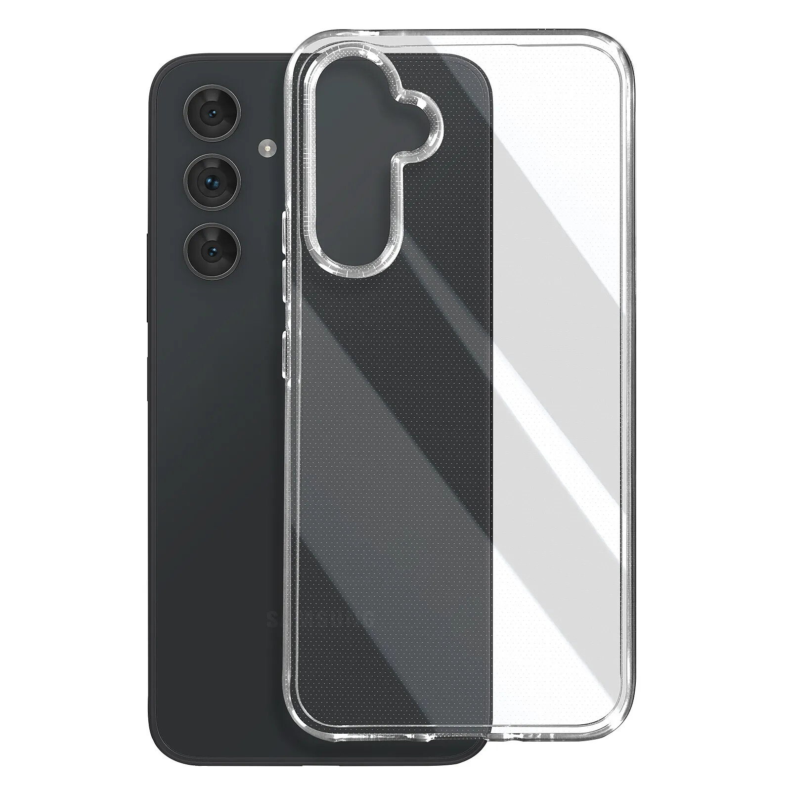 Coque pour Samsung Galaxy A54. Élaborée en silicone gel souple. Bords camera et écran surélevés. Bloc caméra protégé. Design léger pour une prise en main aisée et un rangement facile. Fonctionnalités accessibles.