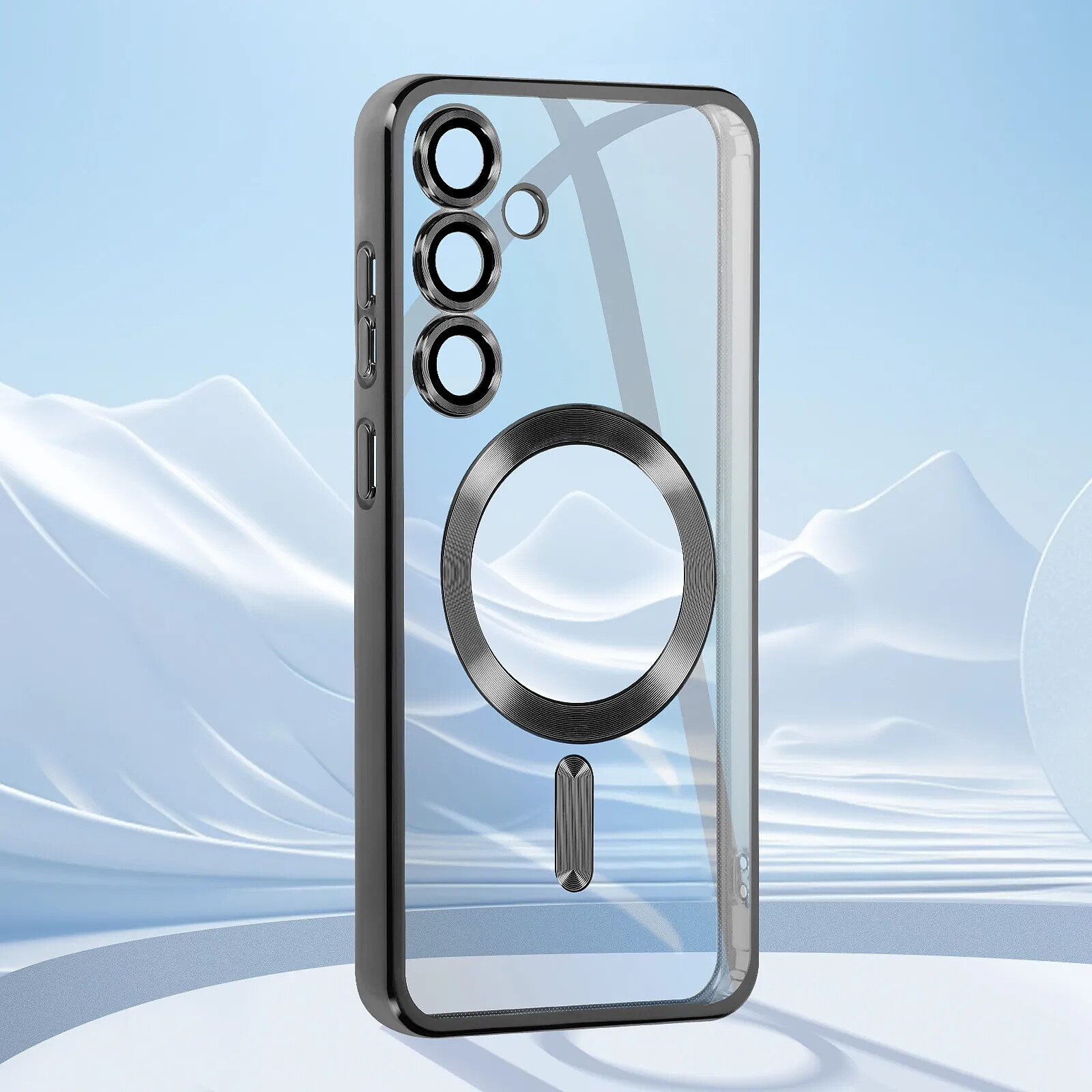 Coque pour Samsung Galaxy S23 FE. Compatibilité MagSafe. Recharge sans fil magnétique. Protection caméra intégrée. Design transparent et contour chromé. Silicone gel flexible. Boutons précis et accessibles. Installation rapide et sécurisée.