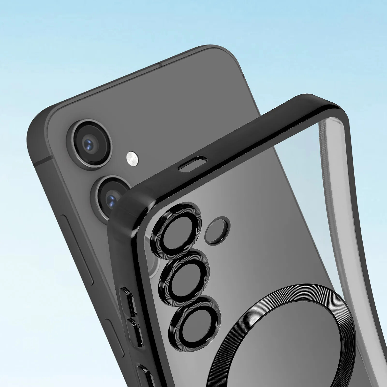 Avizar Coque MagSafe pour Samsung S23 FE en Silicone Contour Chromé Noir |