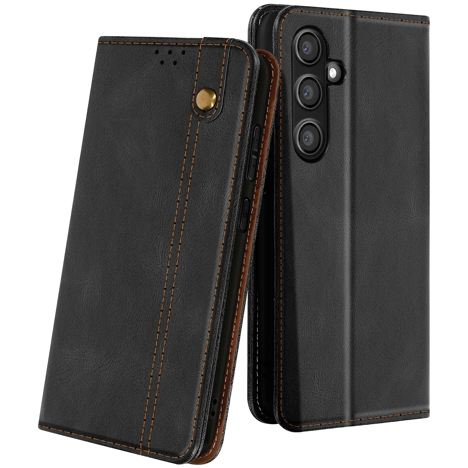 Avizar Étui pour Samsung Galaxy S24 FE Clapet Portefeuille Surpiqué Aimanté Noir