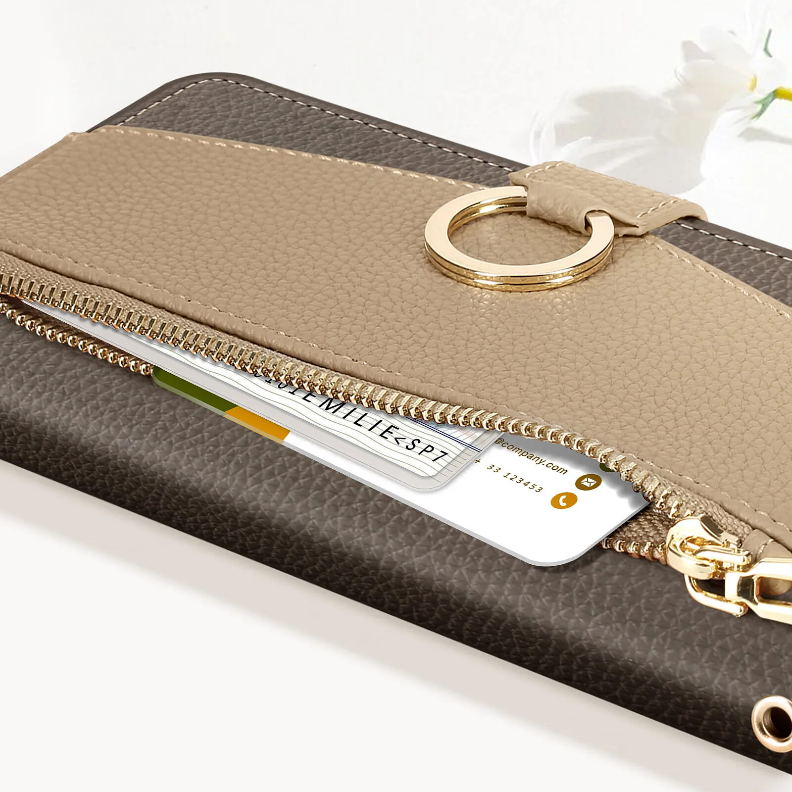 3 espaces de rangements pour cartes avec pochette latérale pour les billets Petit miroir en forme de cœur intégré dans le clapet pour vos retouches de maquillage en cas de besoin Pochette zippée à l'extérieur du clapet pour ranger vos bijoux ou autres objets essentiels Conception en éco-cuir résistant et très élégant grâce à son duo de couleur sublimant votre téléphone