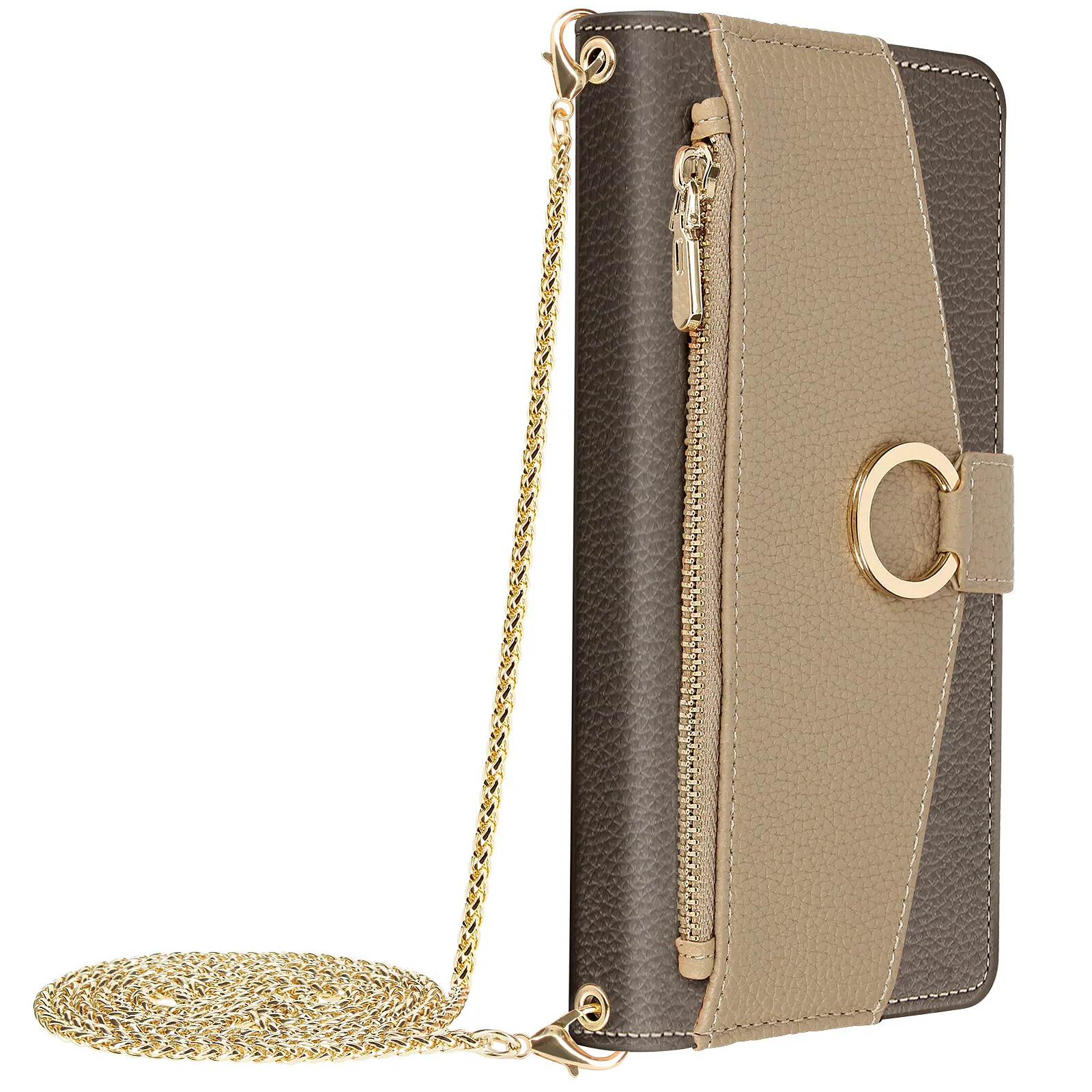 Avizar Étui Bandoulière pour Xiaomi Redmi 13C Portefeuille Pochette Zippée Marron Foncé |