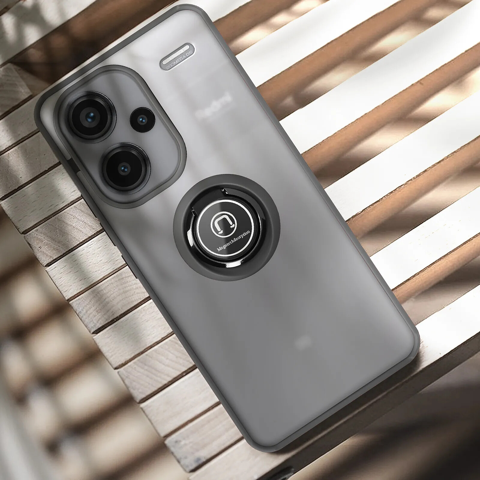 Coque pour Redmi Note 13 Pro Plus, Ringrip. Conçue en polycarbonate + silicone gel. Bague de maintien pouvant se transformer en support vidéo. Finition métallique compatible avec un support magnétique. Dos mat anti-traces. Fonctionnalités accessibles.