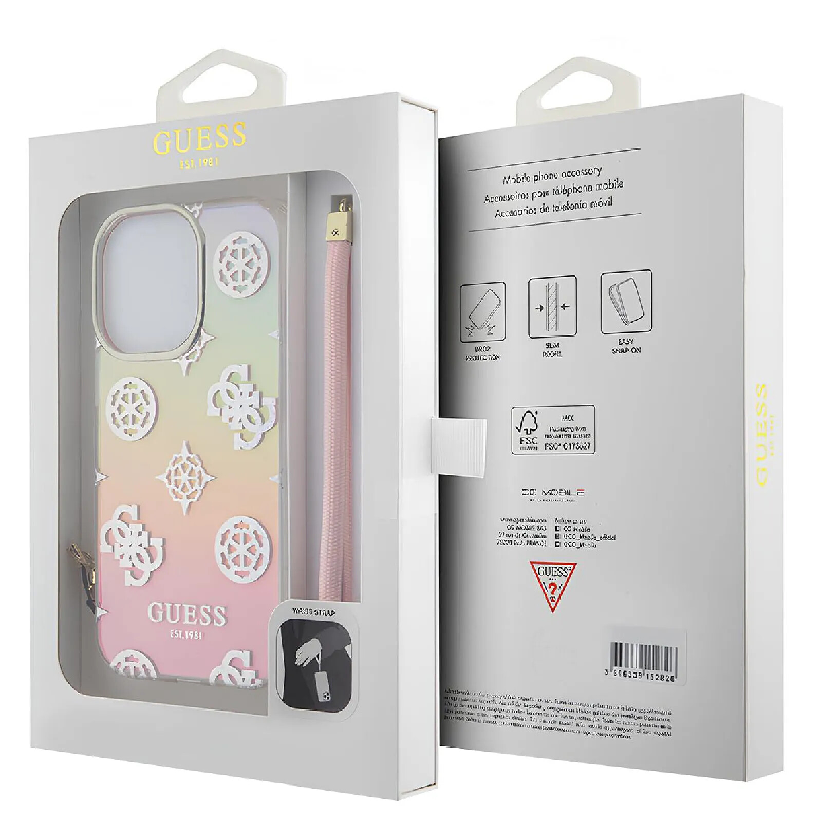 Guess Coque pour Apple iPhone 15 Pro TPU Peony avec dragonne Multicolore |