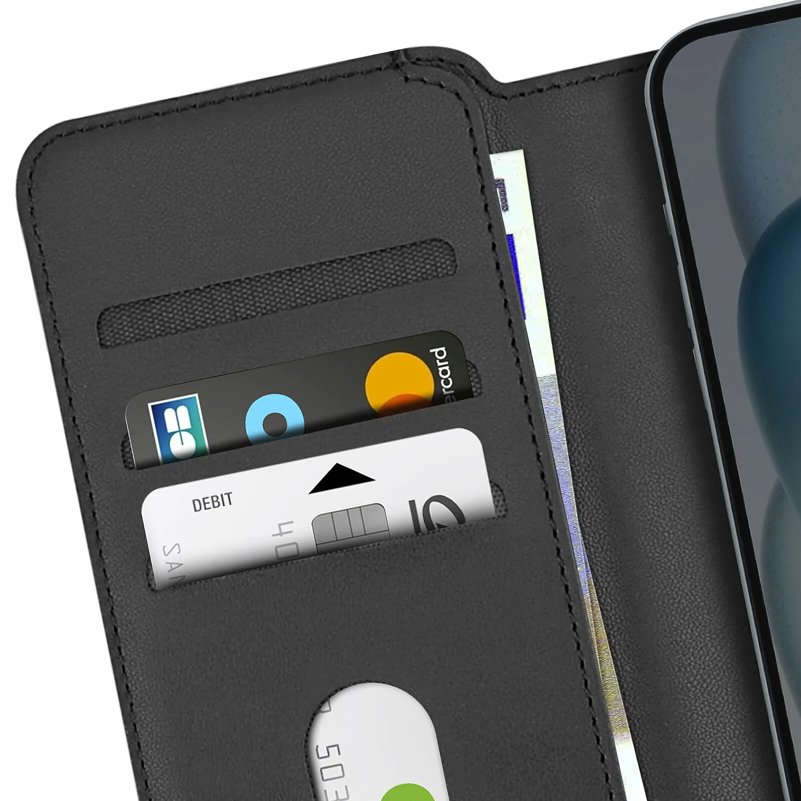 Étui Portefeuille Taille L pour smartphone avec taille maximale jusqu'à 152 x 80 mm. Compatible avec la technologie MagSafe pour une fixation sûre. Plusieurs compartiments pour cartes et billets. Fermeture magnétique sécurisée. Découpes précises pour un accès aux boutons et aux ports. Conception soignée avec une finition raffinée.