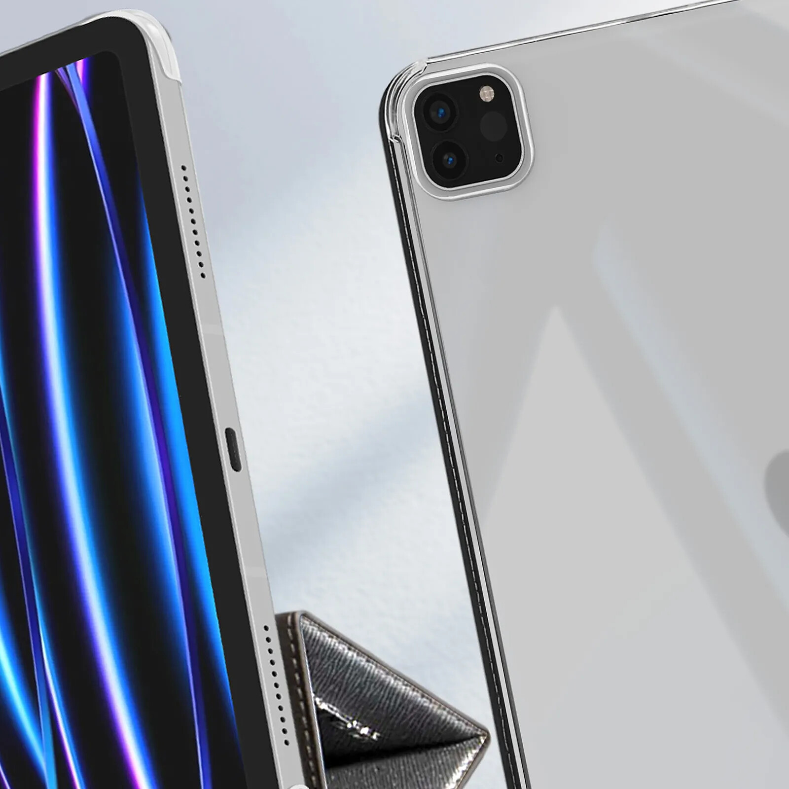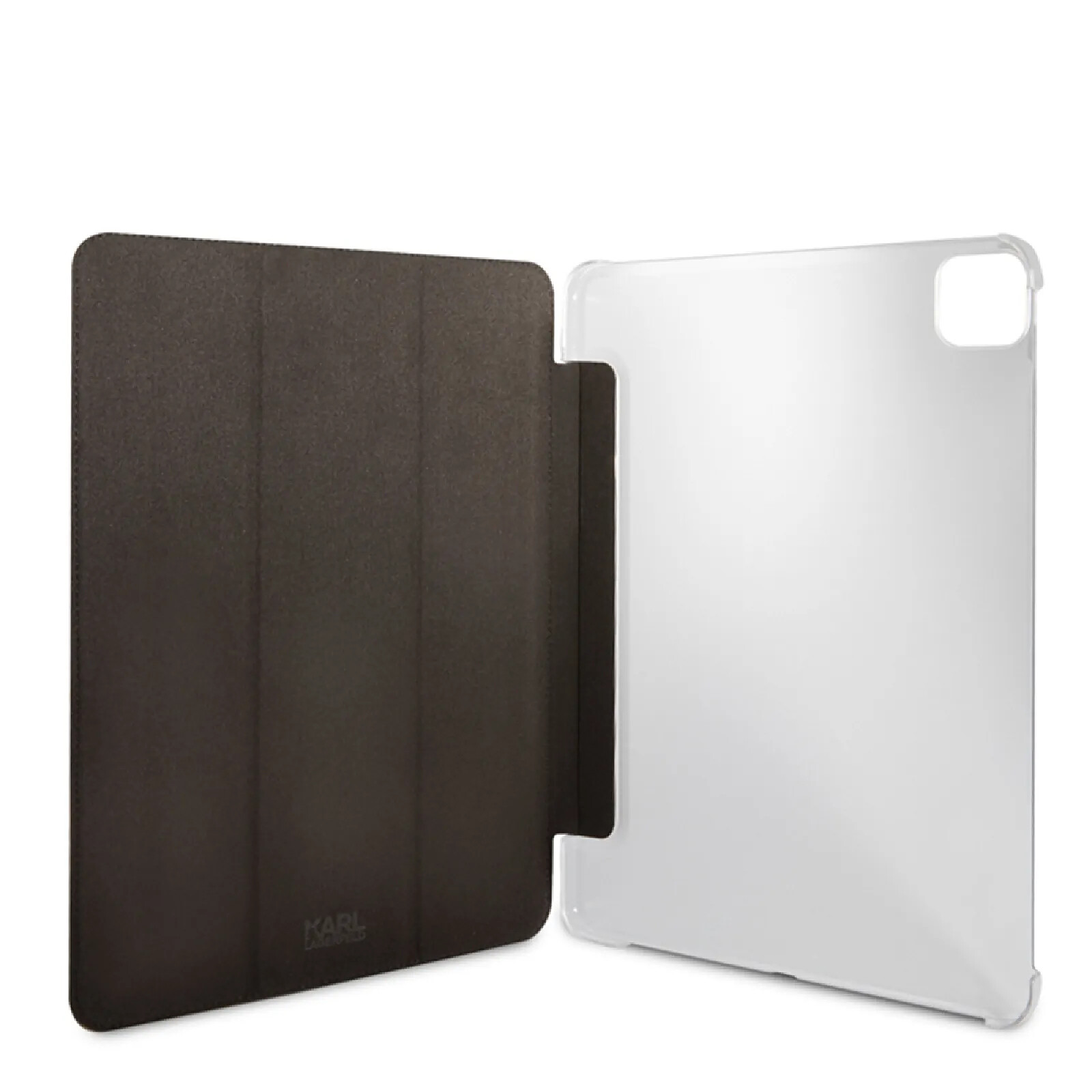 Cet étui gris signé Karl Lagerfeld protège le dos de votre iPad Pro 12.9 pouces 2020 ou 2021 grâce à sa coque arrière transparente en polycarbonate ultra-résistant