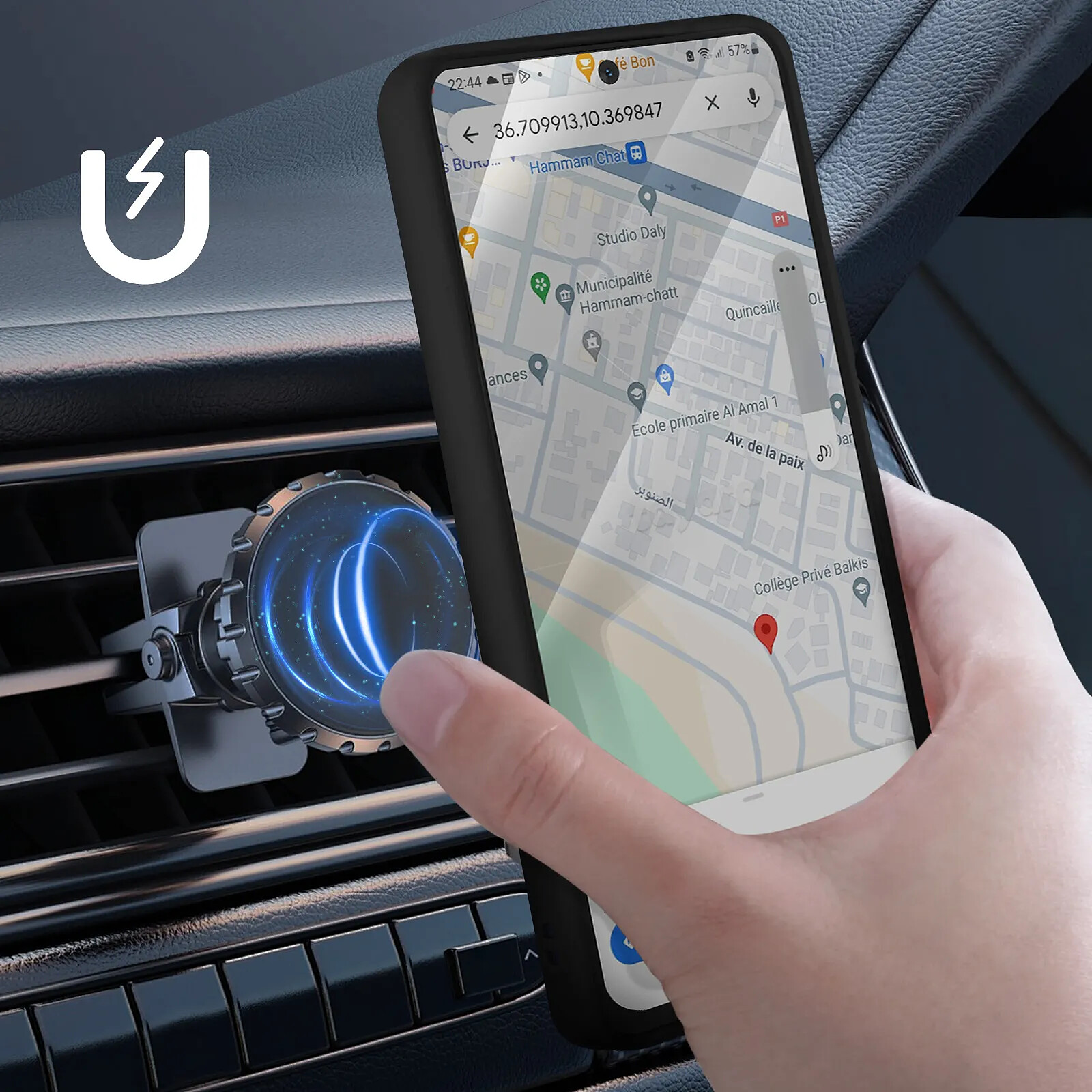 • Coque au dos transparent givré et contour Noir, protection élégante pour votre appareil