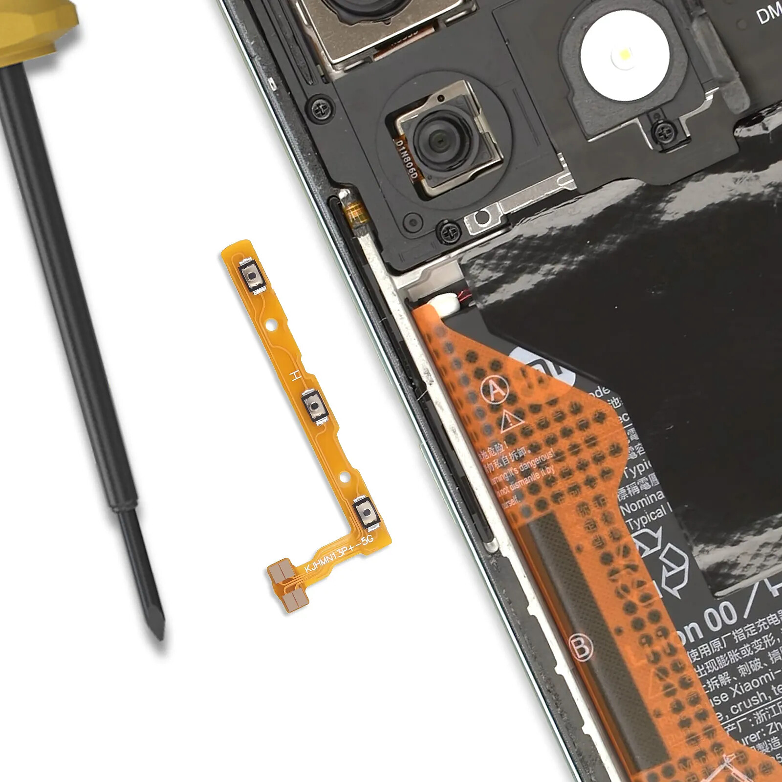 Nappe bouton on / off Power + Volume pour Xiaomi Redmi Note 13 Pro 5G. Si votre téléphone ne répond plus à vos commandes, remplacez la nappe avec cette nouvelle pour retrouver ses fonctions : allumer, éteindre, verrouiller, contrôler le volume.