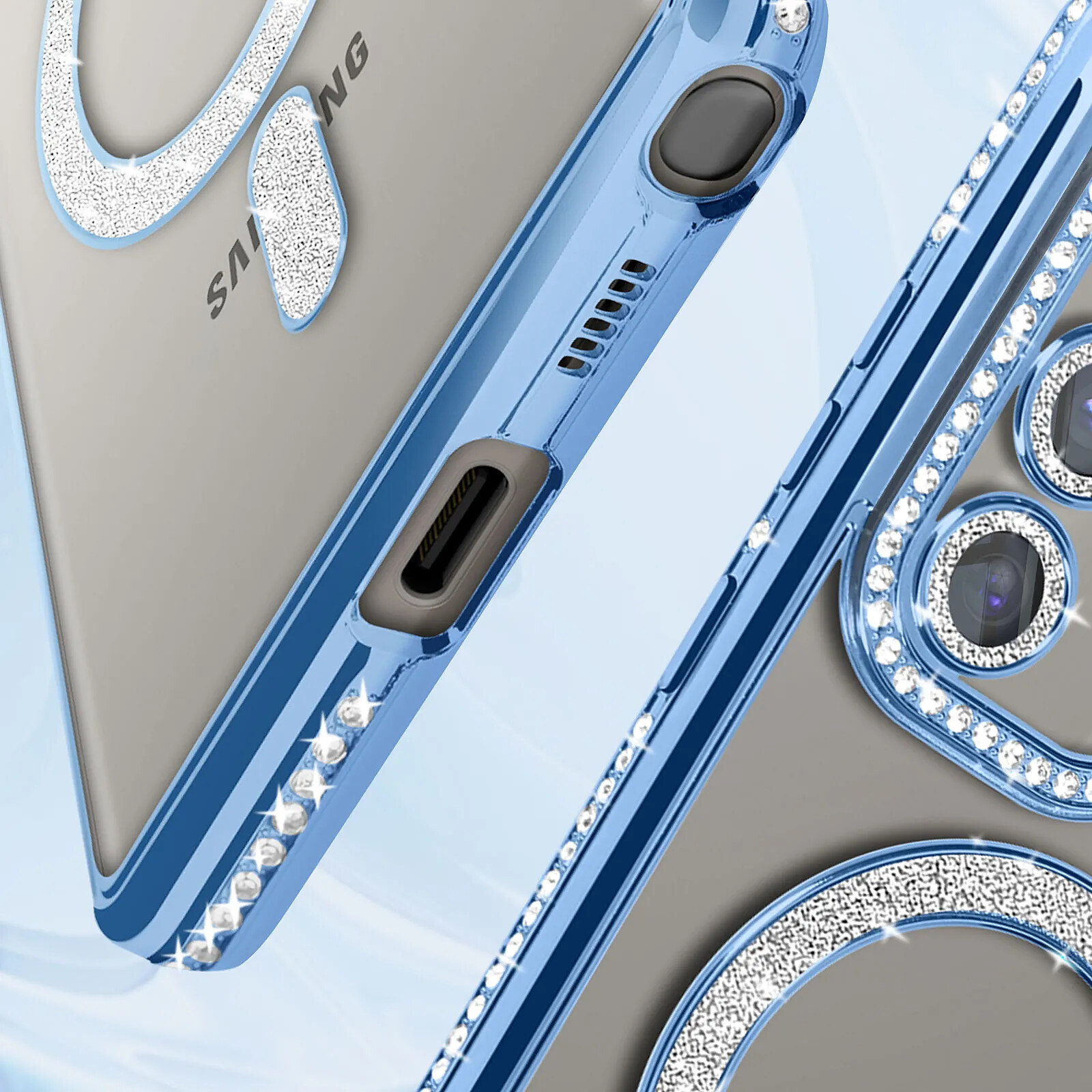 Avizar Coque Diamant pour Samsung Galaxy S24 Ultra MagSafe Contour Strass Bleu clair