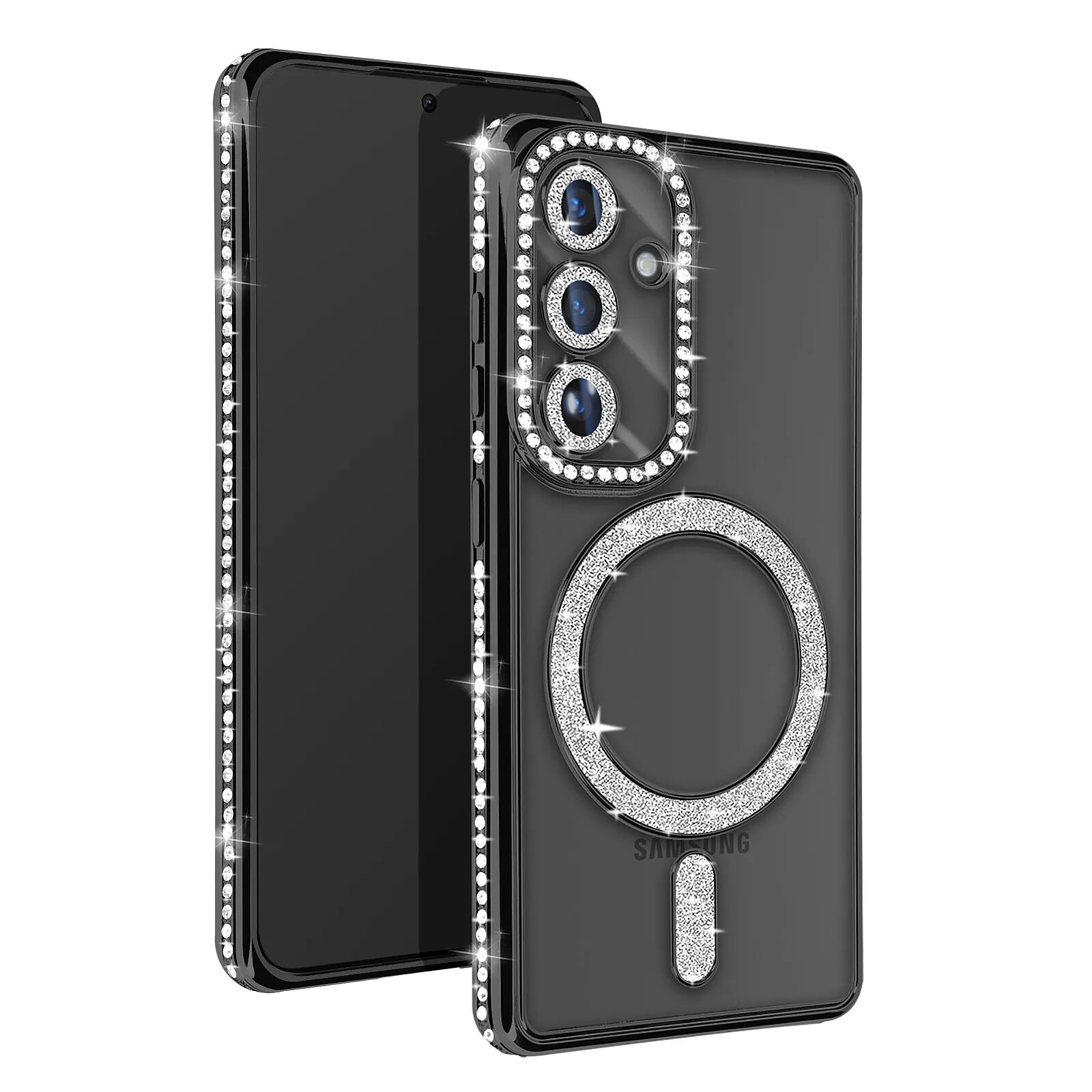 Avizar Coque Diamant pour Samsung Galaxy S24 MagSafe Contour Strass Noir