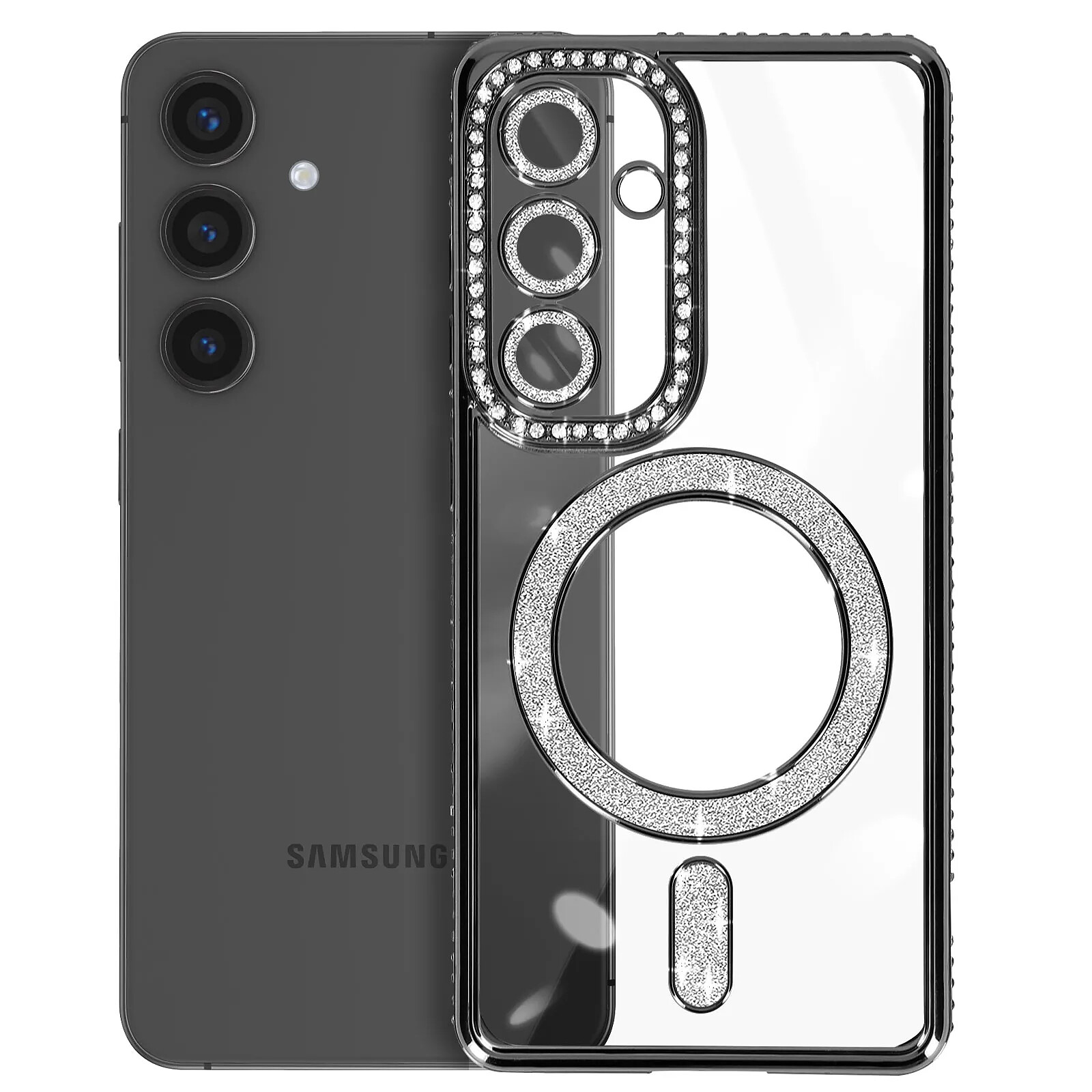 Avizar Coque Diamant pour Samsung Galaxy S24 MagSafe Contour Strass Noir |