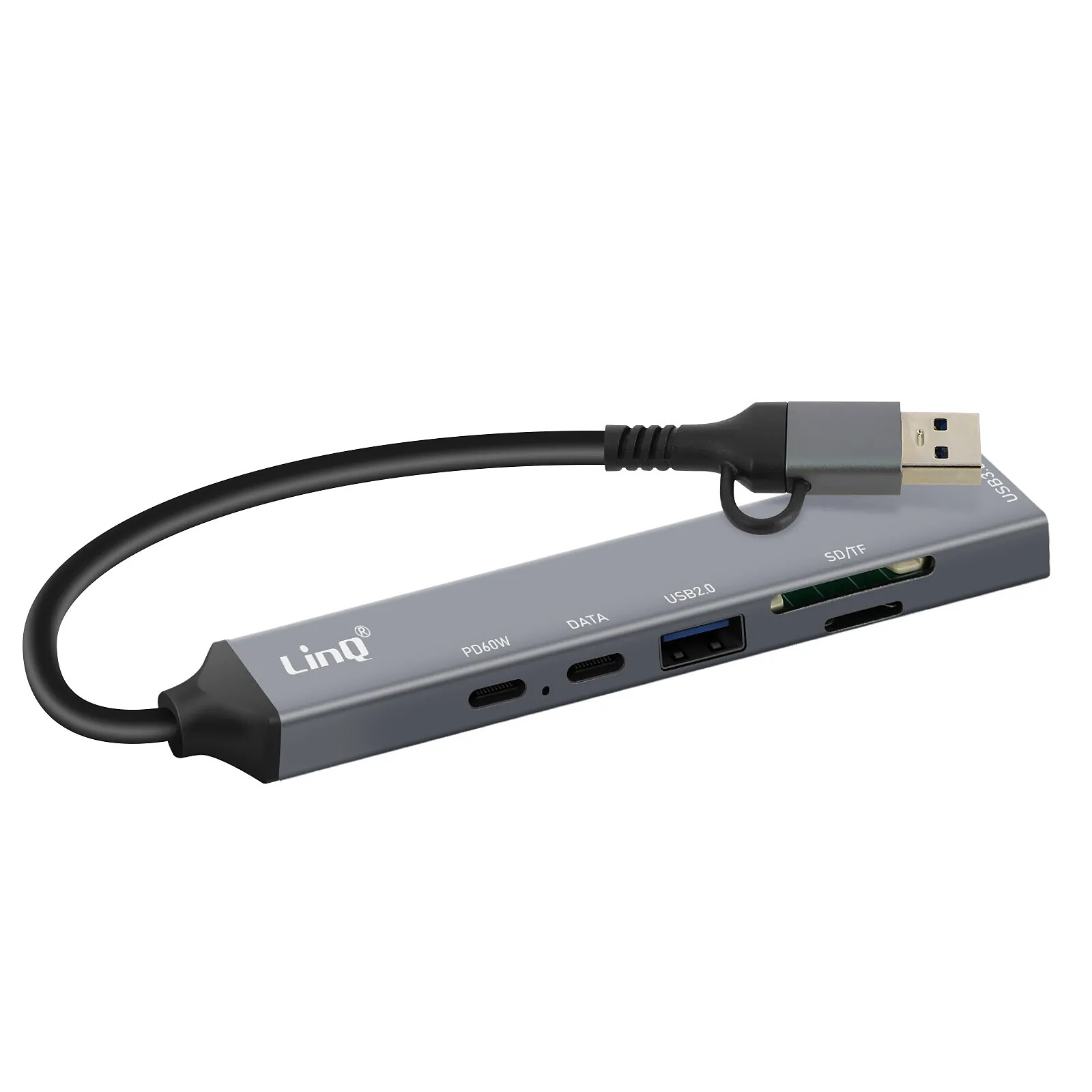 LinQ Hub USB Support OTG USB-C Power Delivery 60W et Lecteur Carte SD / TF Gris