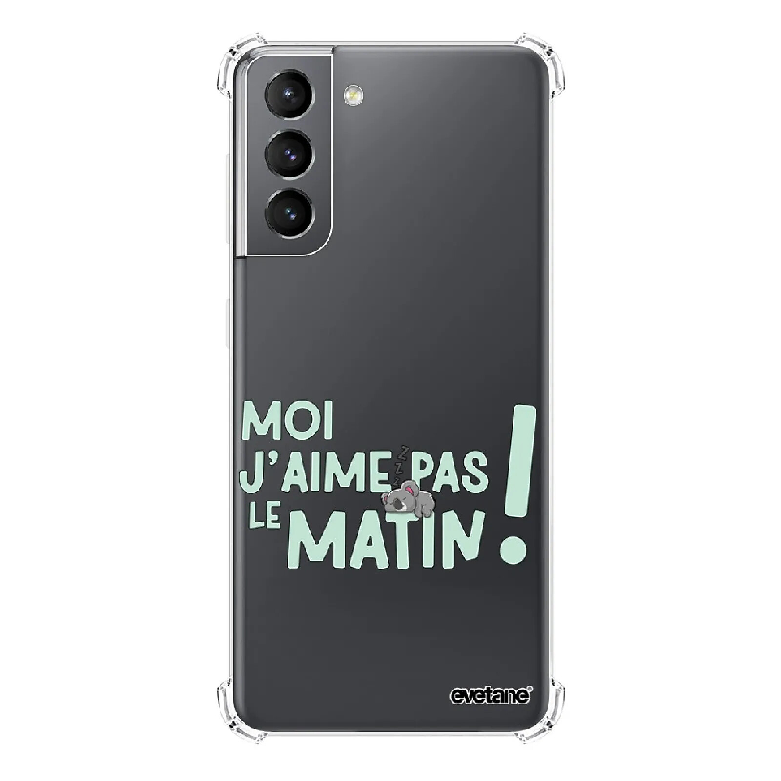Evetane Coque Samsung Galaxy S21 5G Silicone antichocs Solides coins renforcés transparente Motif J'aime pas le matin |