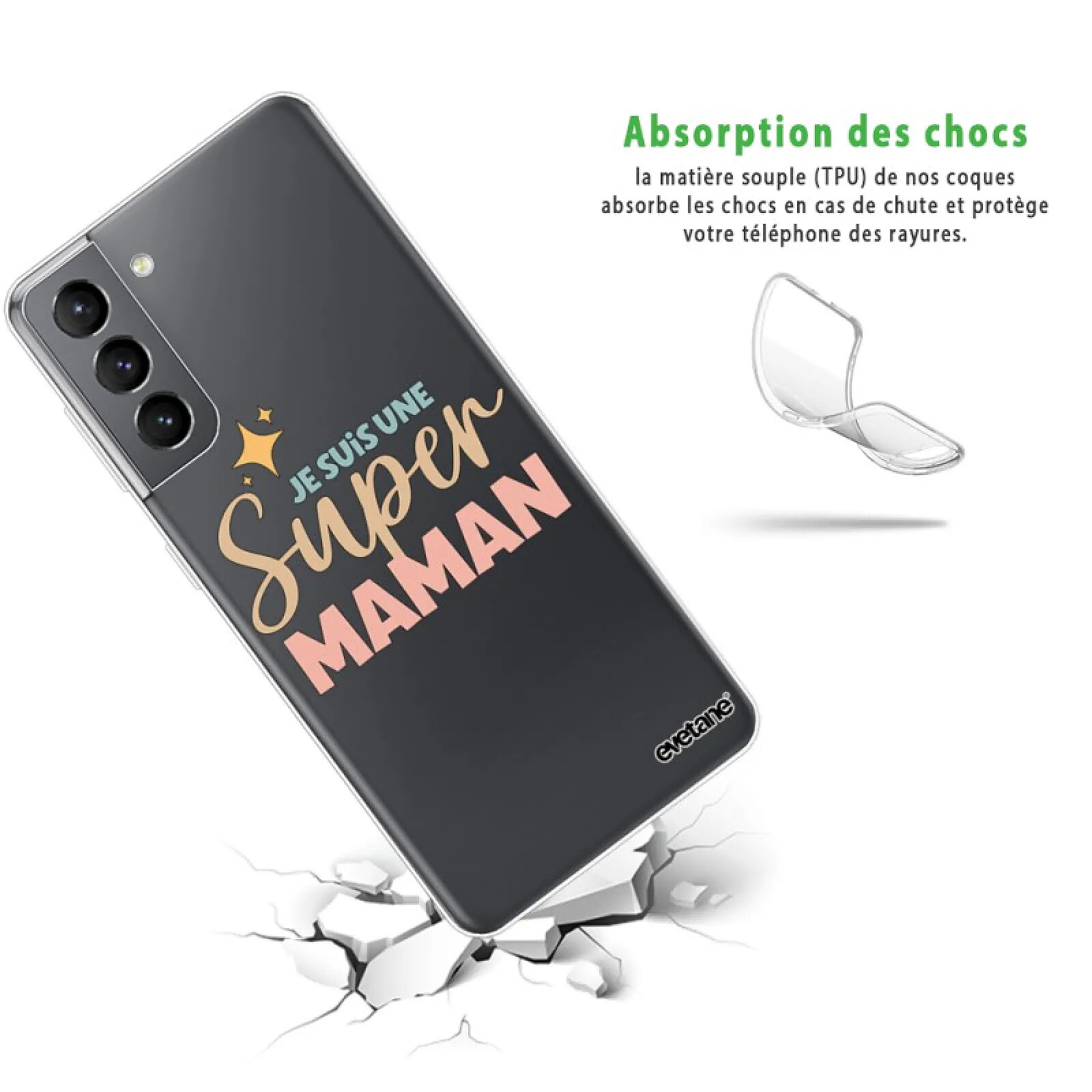 Evetane Coque Samsung Galaxy S21 5G 360 intégrale transparente Motif Je suis une super Maman Tendance .