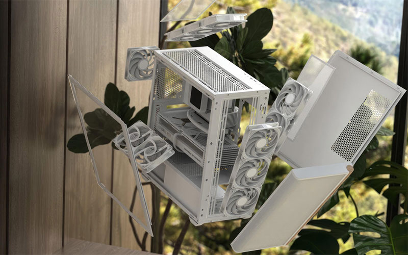 Le D501A V2 offre une excellente capacité de refroidissement avec 4 ventilateurs de 120 mm déjà installés et des emplacements pour jusqu’à 10 ventilateurs. Il prend également en charge les systèmes watercooling jusqu’à 360 mm à l’avant et en haut et 120 mm à l’arrière, assurant une dissipation thermique efficace même pour les composants haut de gamme.