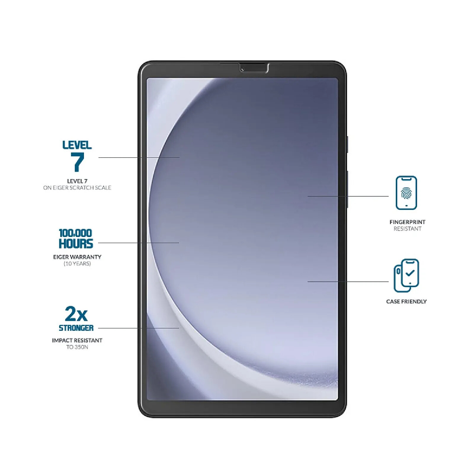 Eiger Protection d'Écran pour Galaxy Tab A9 en Verre Trempé Premium Asahi 2.5D Transparent |