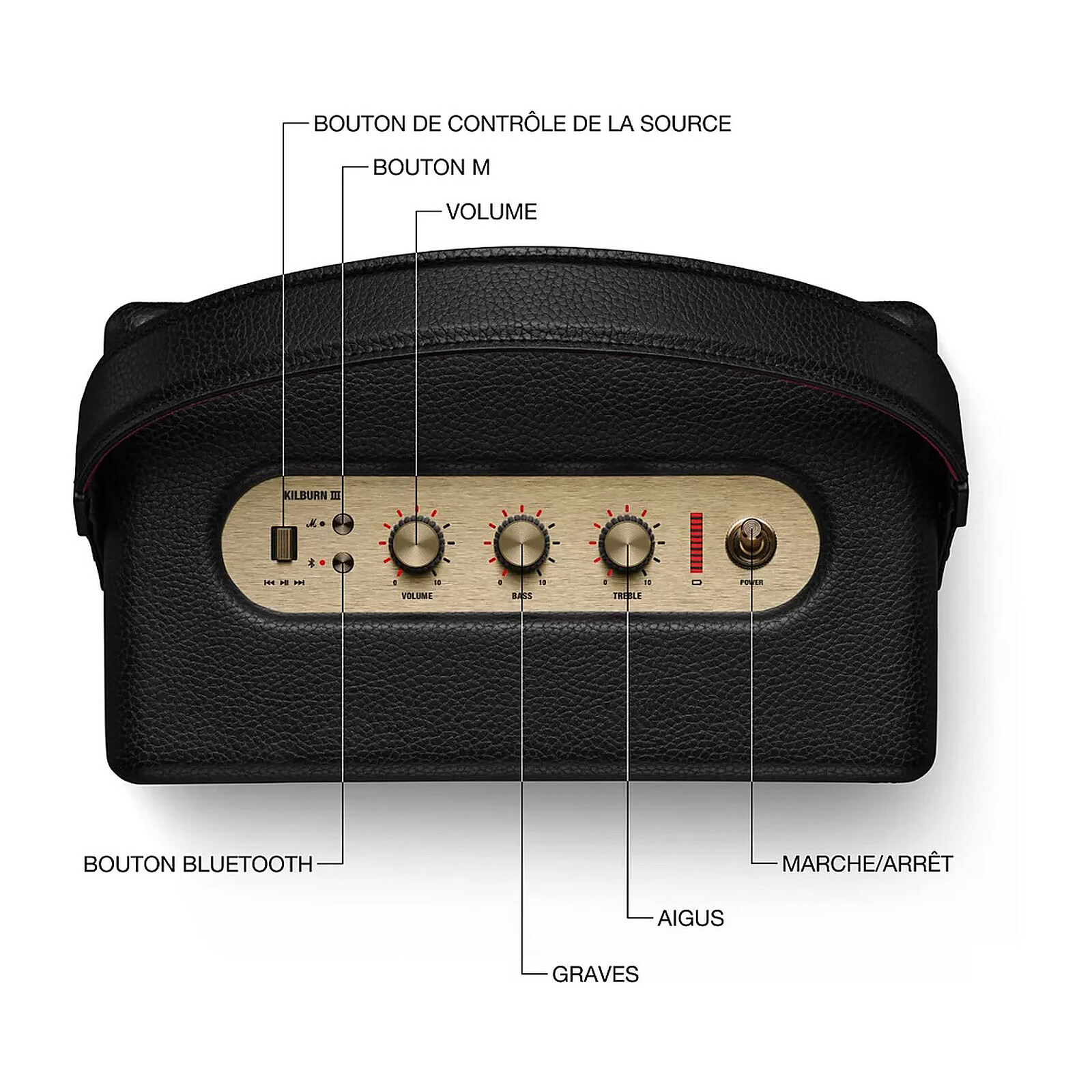 - Commandes tactiles : des commandes intuitives conçues dans le plus pur style Marshall
