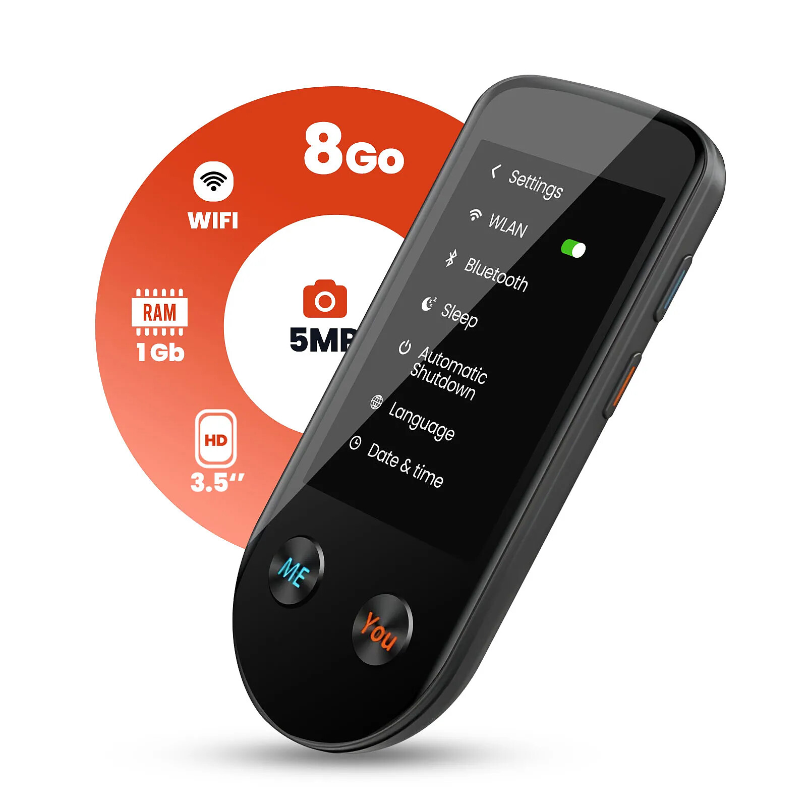 Traducteur vocal compact 13,5 x 6 cm avec écran tactile HD 3,5 pouces, intuitif et confortable