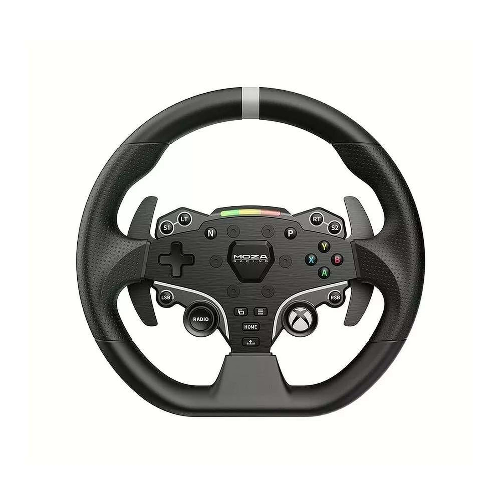 Le Moza Racing ESX combine la licence officielle Xbox avec la technologie Direct Drive MOZA, pour une expérience de pilotage immersive et précise sur PC comme sur console. Son alliage d’aluminium robuste associée à des grips ISF PU antidérapants et résistants à la transpiration garantit confort et fiabilité durant les sessions les plus intenses. Avec 22 boutons personnalisables, deux joysticks et des LED RPM RGB dynamiques, ce volant donne tout le contrôle au pilote, sans compromis.