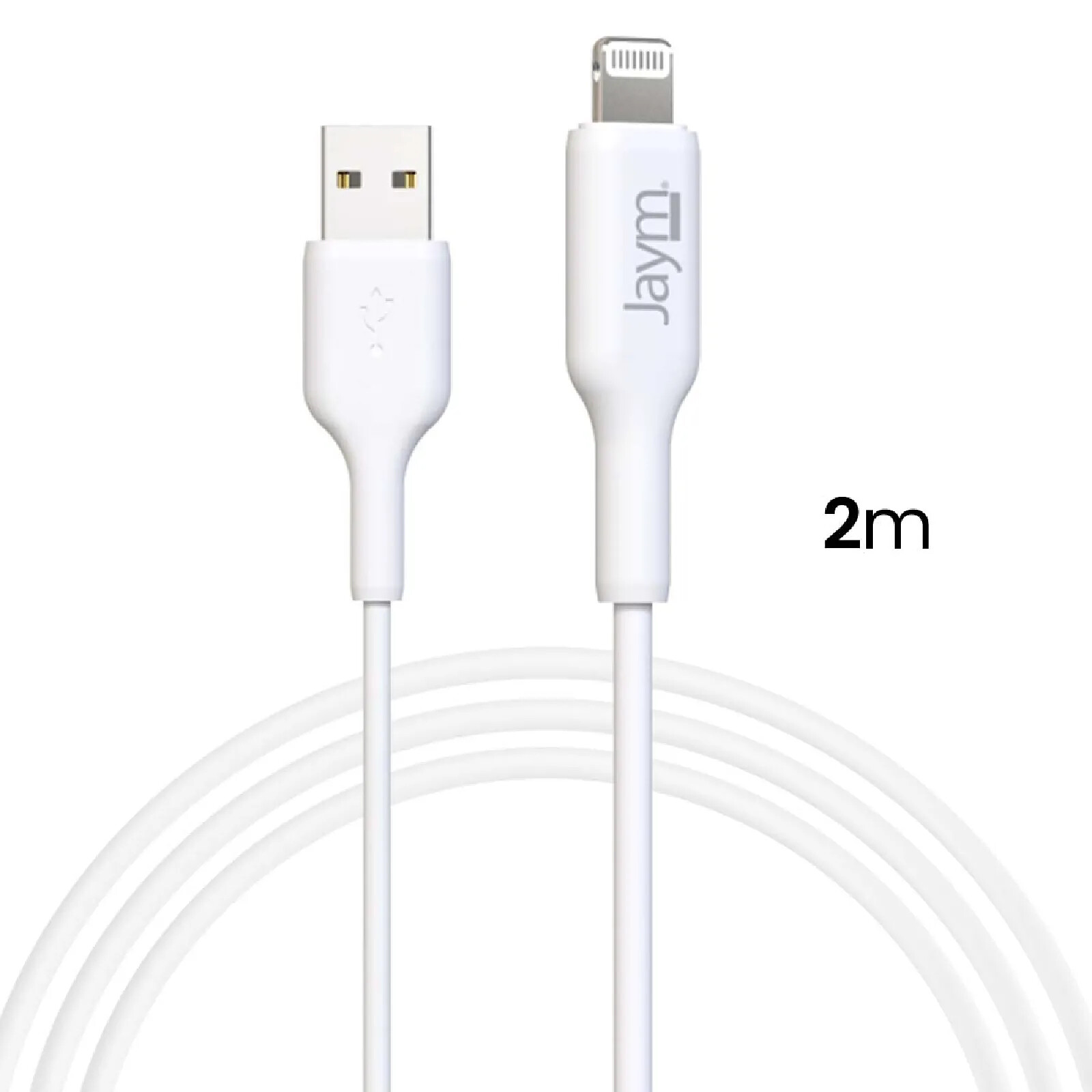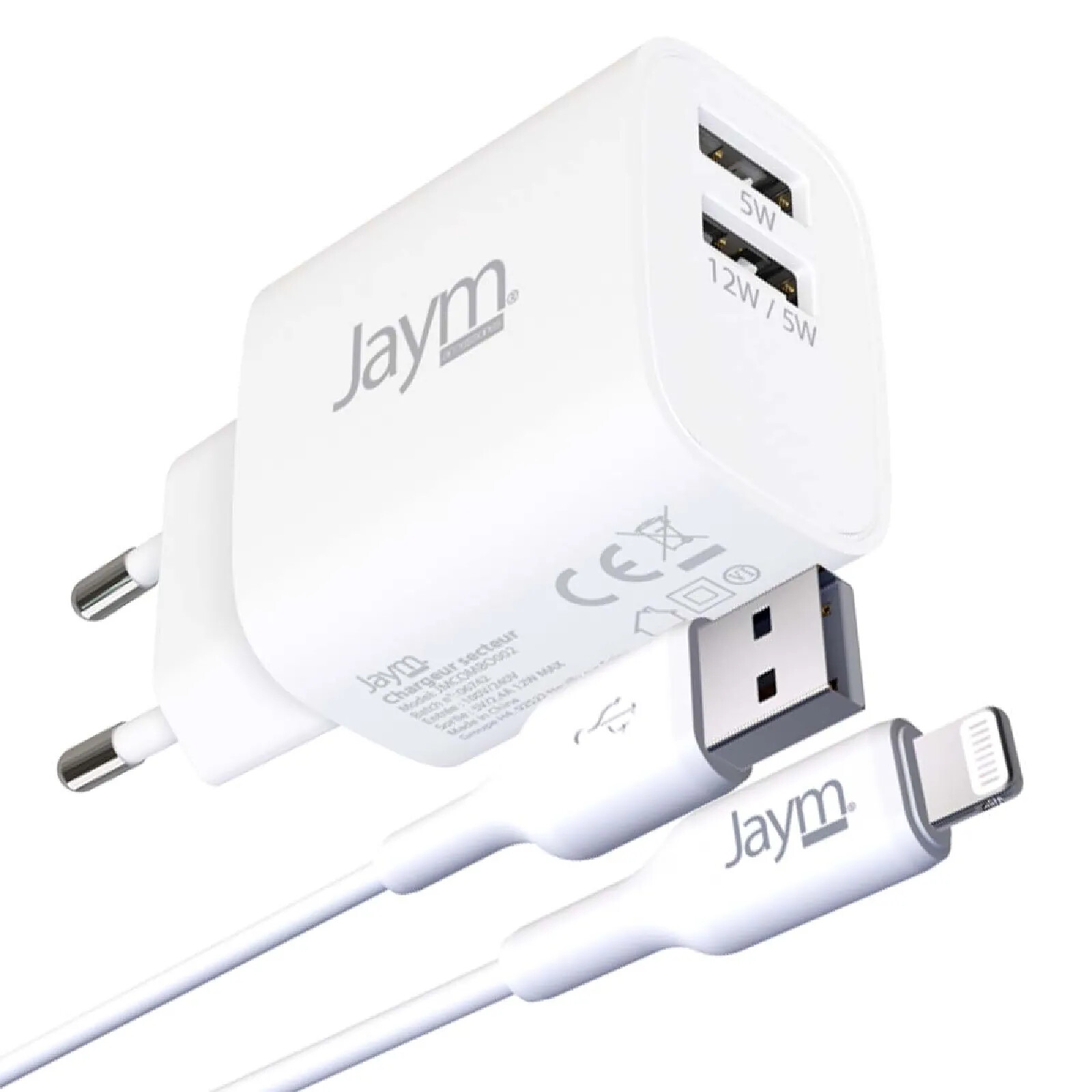 Jaym Pack Chargeur Secteur 2 USB-A 2.4A 12W avec Câble USB-A vers Lightning 2m Blanc