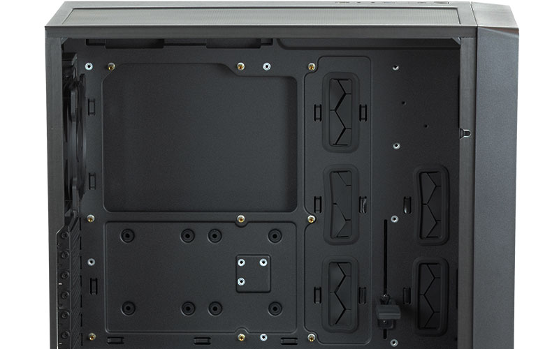 Compatible avec les solutions AIO de watercooling jusqu’à 420 mm en façade, le boîtier permet de maintenir vos composants au frais, même en pleine charge. Le tout, dans un environnement maîtrisé et silencieux grâce aux ventilateurs PWM et aux panneaux latéraux équipés de revêtement anti-bruit.
