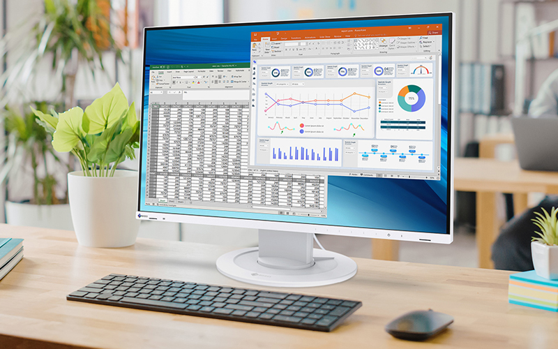 Doté d’une dalle IPS antireflet, l’EV2410R garantit une reproduction des couleurs stable avec des angles de vision jusqu’à 178° horizontalement et verticalement. L’un des véritables atouts pour le confort visuel est la technologie Auto EcoView, qui ajuste automatiquement la luminosité selon la lumière ambiante, combinée au mode Paper (réduction de la lumière bleue), la fatigue oculaire est significativement réduite au fil de la journée. Avec une luminosité typique de 350 cd/m² et un contraste statique de 1300:1, les images restent nettes et bien définies, même dans des conditions d’éclairage variables.