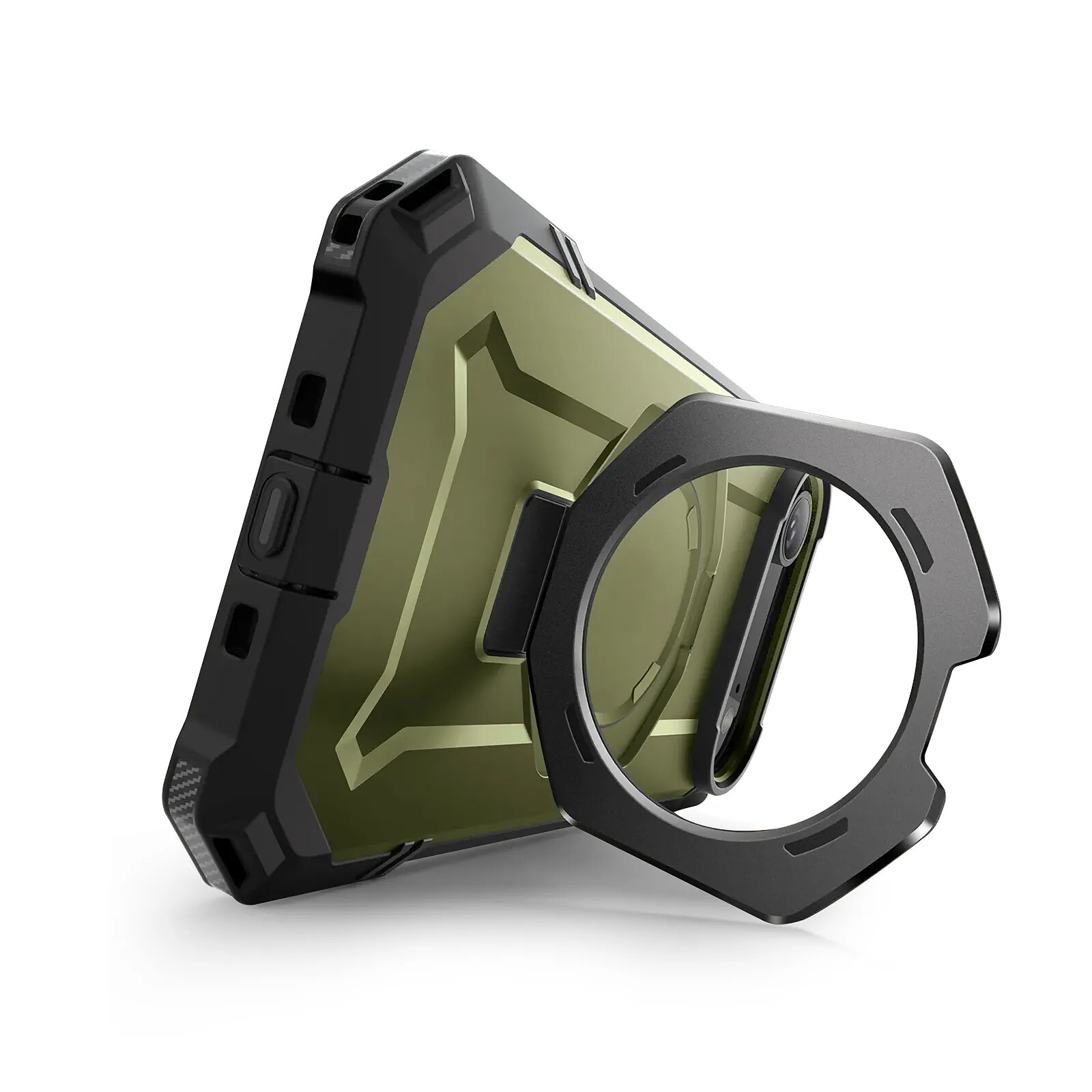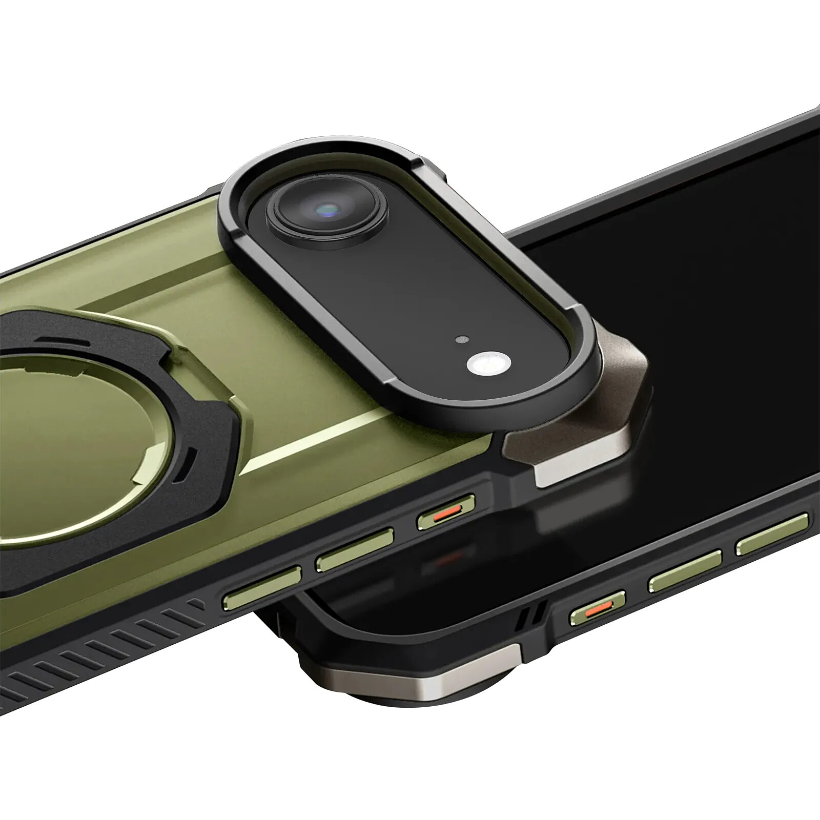 Cette coque Supcase Unicorn Beetle Grip pour iPhone Air offre une protection militaire tout en restant élégante. Résistante aux chutes jusqu'à 4.5 mètres, elle est équipée d'aimants MagSafe puissants et d'une béquille anneau en aluminium réglable. Son bouton photo tactile à haute réactivité permet une capture fluide. Finition métallique vert Guldan moderne avec contour caméra renforcé.