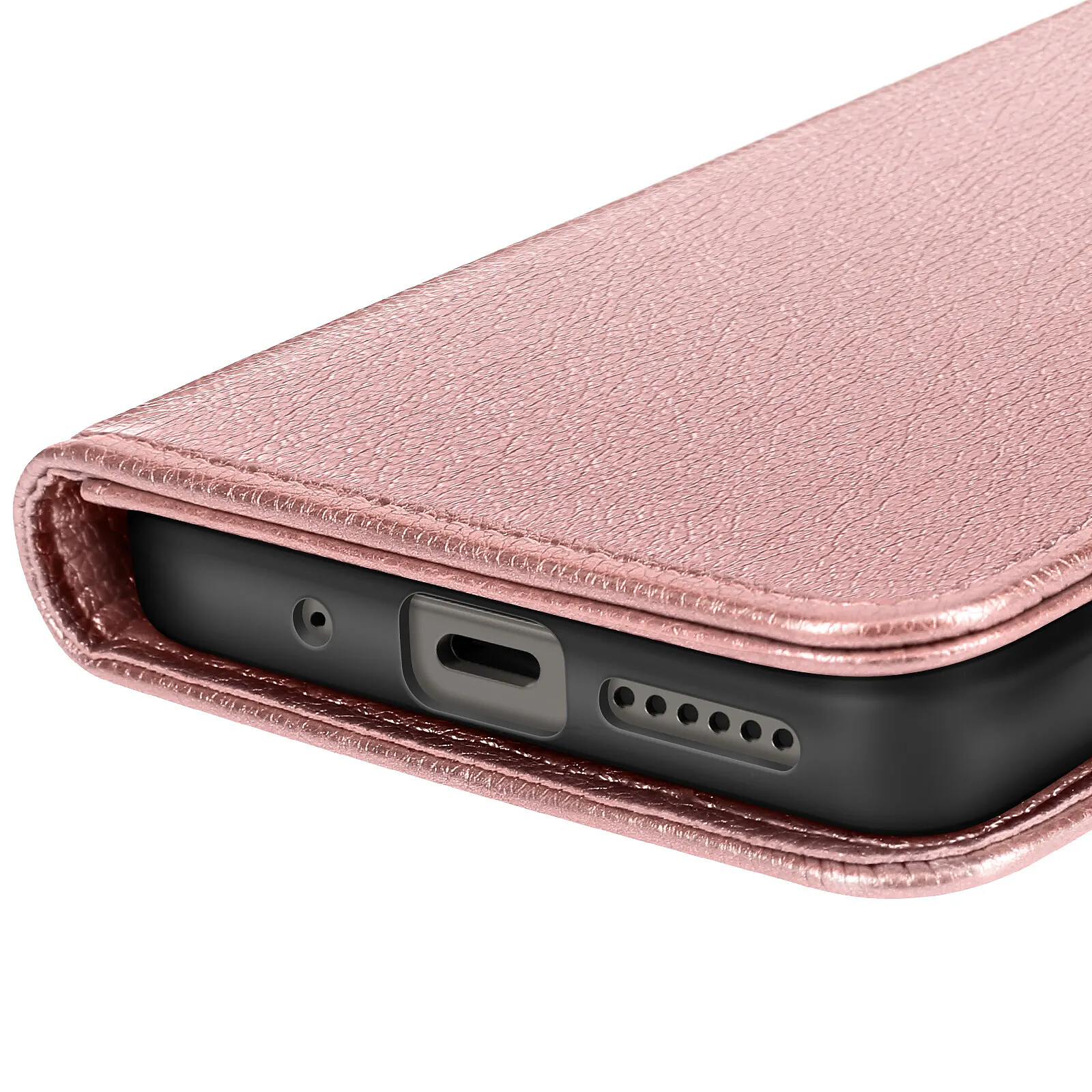 Cet étui portefeuille rose pour Xiaomi Redmi 15 5G adopte une finition Chesterfield à surface grainée