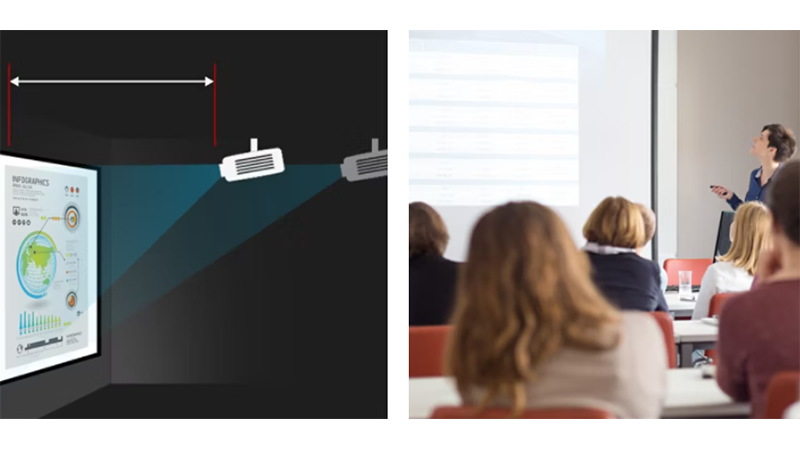 Grâce à sa focale courte, le projecteur Acer S1387 permet d'afficher une image de 36" avec simplement 40 cm de recul. Une solution pratique pour projeter dans les espaces restreints mais également pour éviter les ombres désagréables.