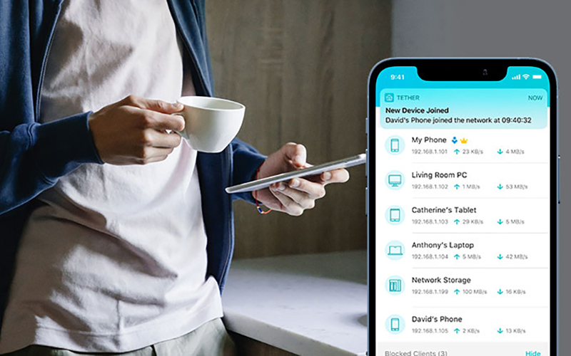 - Configuration et utilisation faciles : la gestion du réseau est particulièrement simple avec l'application Tether